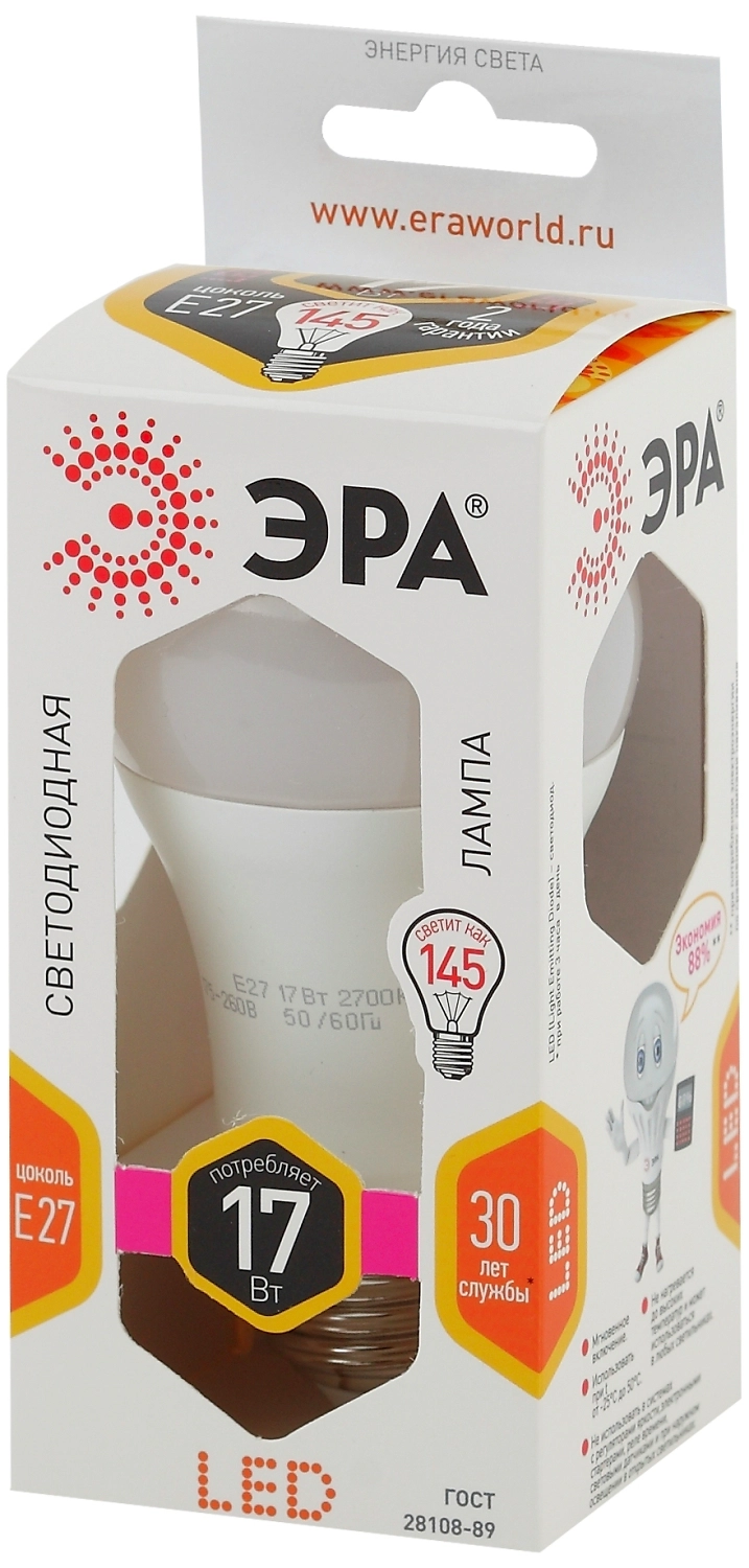 Светодиодная лампа ЭРА A60 E27 17 Вт 1360 лм 2700 К груша