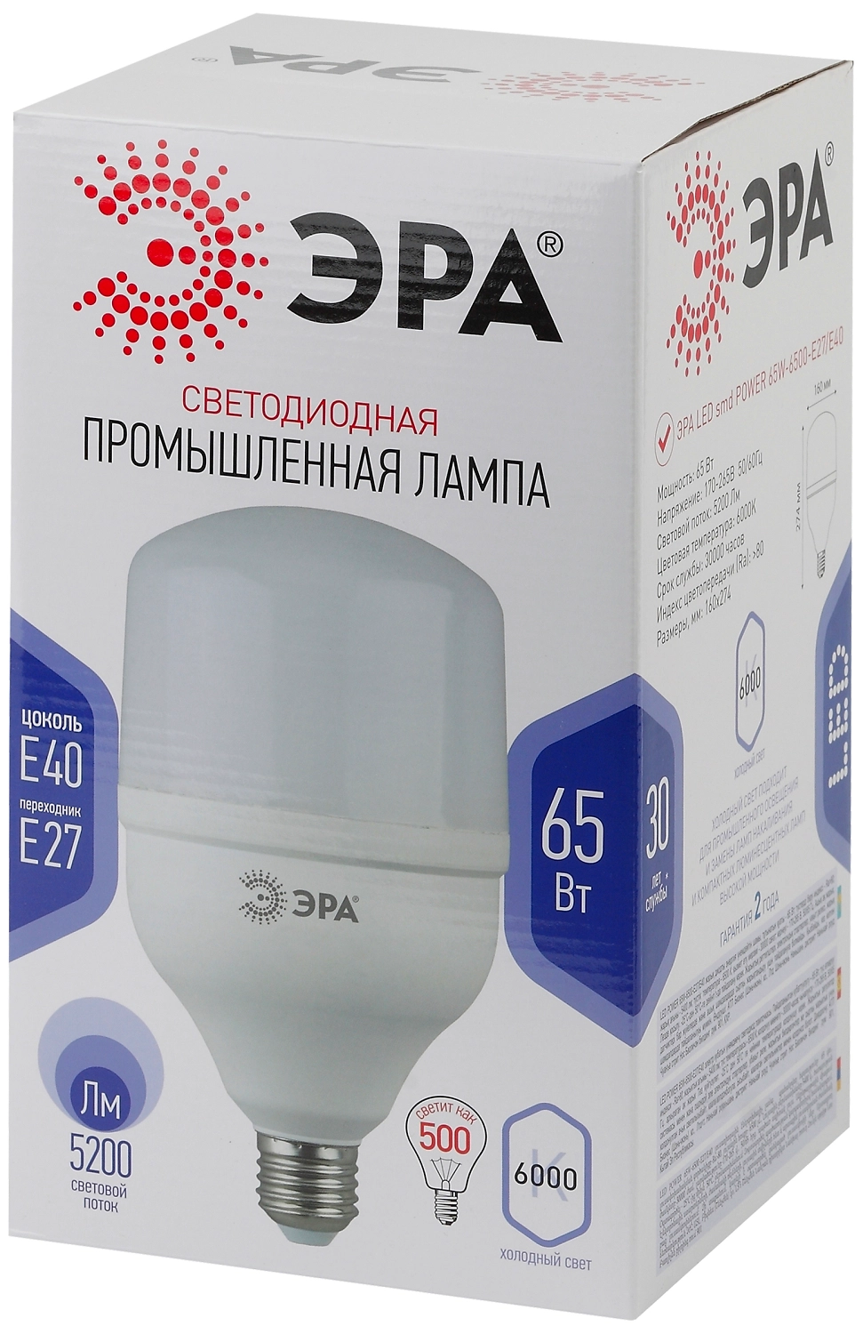 Светодиодная лампа ЭРА LED POWER E27 65 Вт 5200 лм 6500 К груша - энергоэффективный аналог лампочки накаливания в 350 Вт.