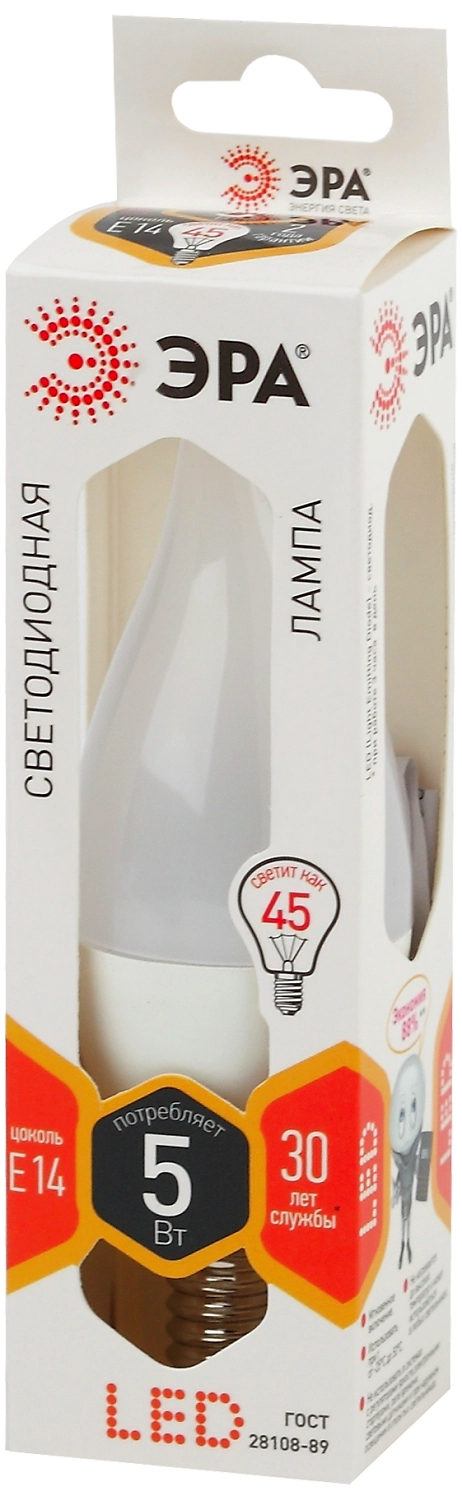 ЭРА LED BXS E14 5 Вт - компактная светодиодная лампа теплого белого света, выполненная в виде свечи.