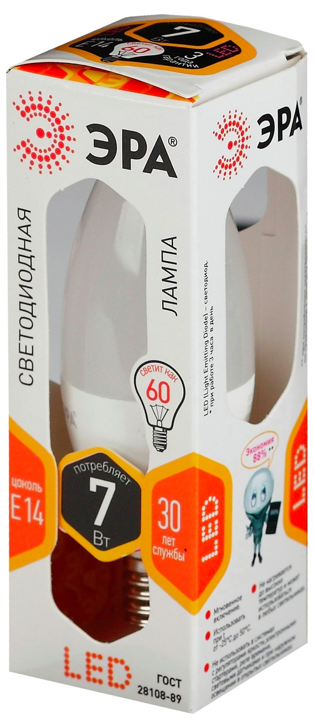 ЭРА Стандарт Е14 7 Вт - светодиодная лампа с теплым белым светом.