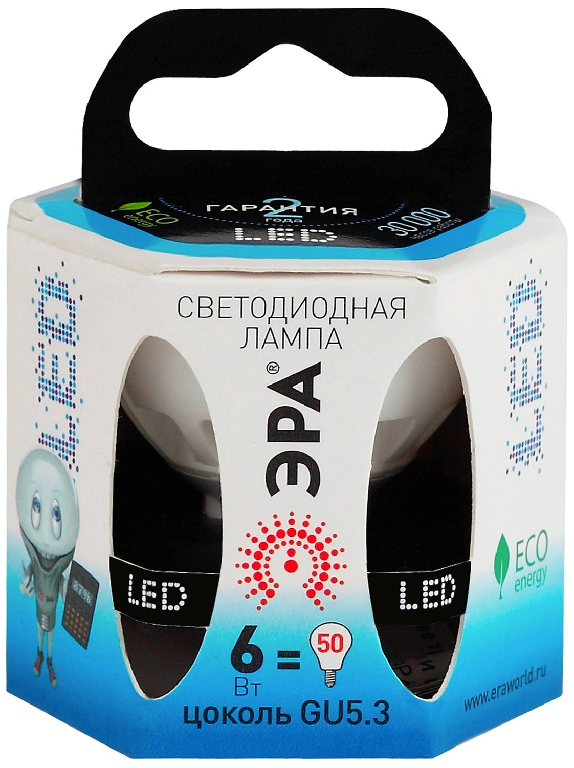 Светодиодная лампа ЭРА MR16 GU5.3 6 Вт рефлекторная 480 лм 4000 К - подходящее освещение для офиса или домашнего кабинета. Рабочий ресурс - до 30 000 часов.