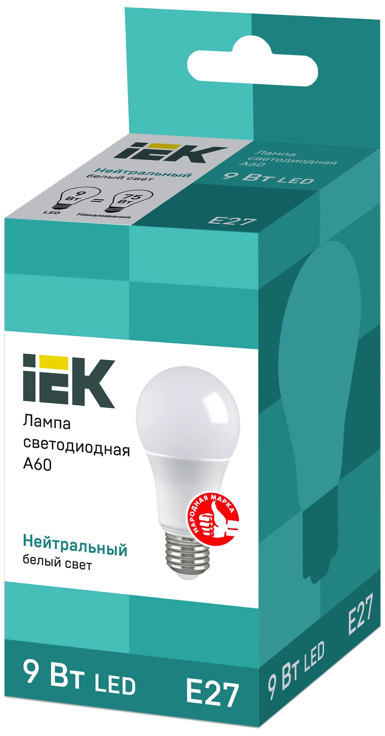IEK A60 E27 9 Вт - энергоэффективная светодиодная лампа нейтрального дневного света.