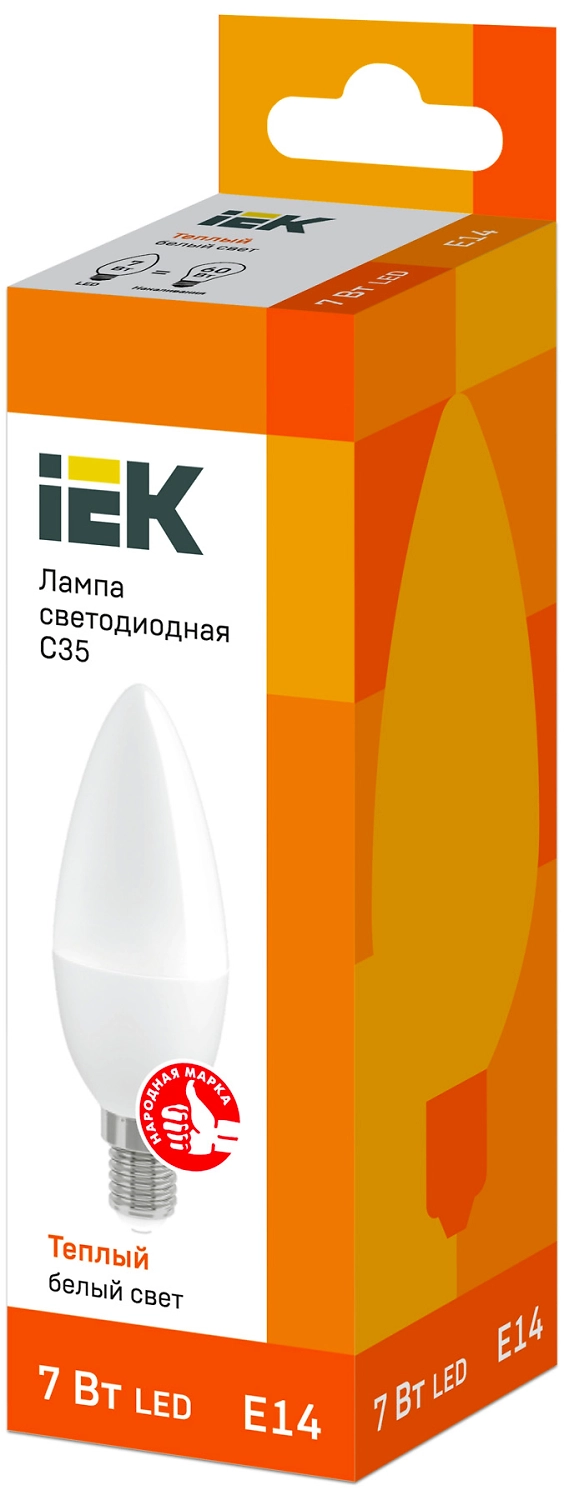 Светодиодная лампа IEK C35 представляет собой энергоэффективный источник света с цоколем Е14. Колба выполнена в форме свечи, имеет белое матовое покрытие. Модель мощностью 7 Вт эквивалентна 60-ваттной лампе накаливания.
