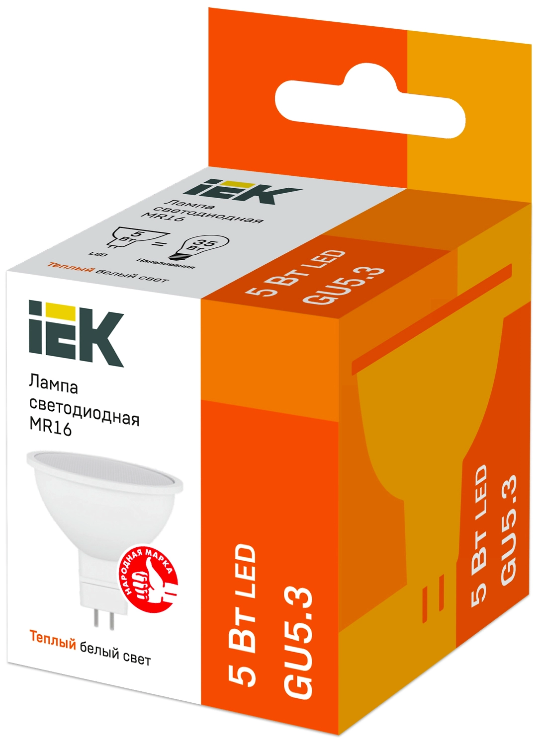 Светодиодная лампа IEK MR16 GU5.3 5 Вт 450 лм 3000 К рефлектор - современный энергосберегающий источник света, который используется как альтернатива галогенной лампе с цоколем GU5.3 мощностью 35 Вт.