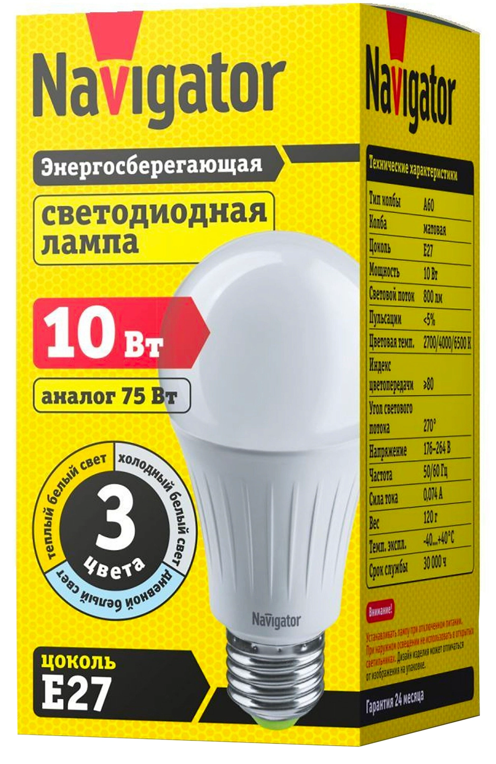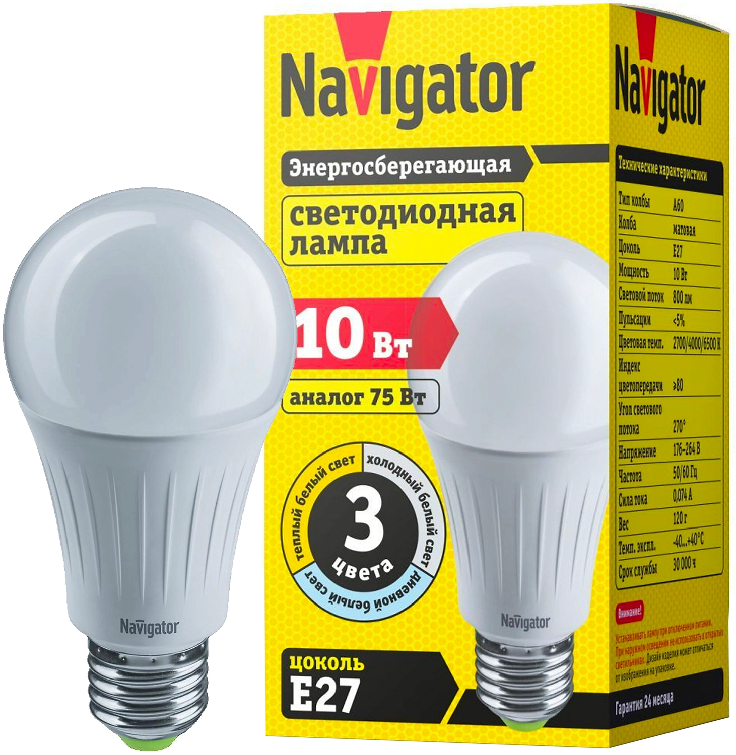 Светодиодные энергосберегающие лампы общего освещения Navigator NLL-3COLOR позволяют изменять цветовую температуру (теплый, холодный и дневной белый свет) посредством обычного выключателя.