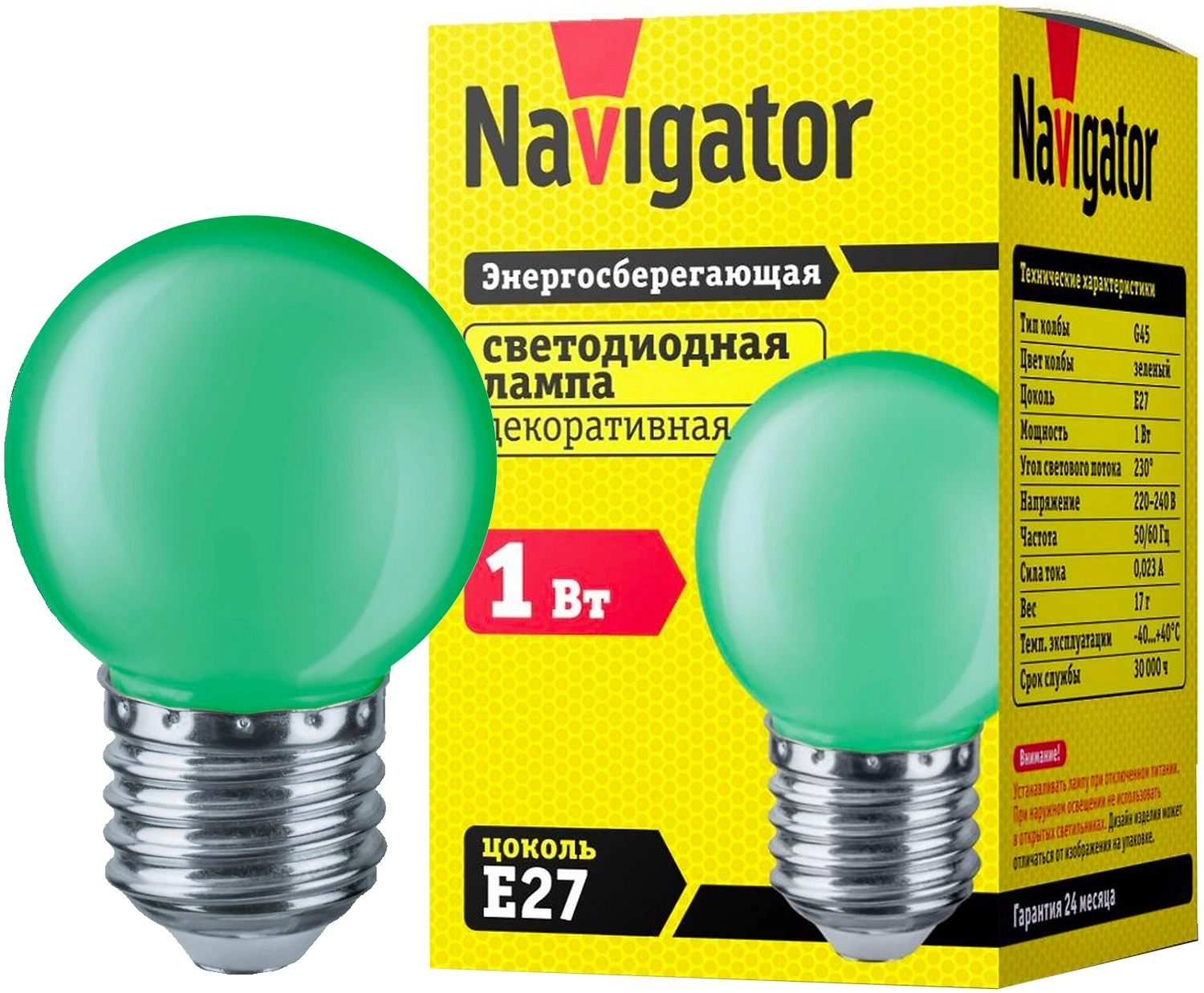 Светодиодные энергосберегающие лампы декоративного освещения Navigator серии NLL-G45-1. Колба лампы выполнена в форме шара. Поверхность колбы матовая, цветная. Идеальное решение для декоративного освещения.