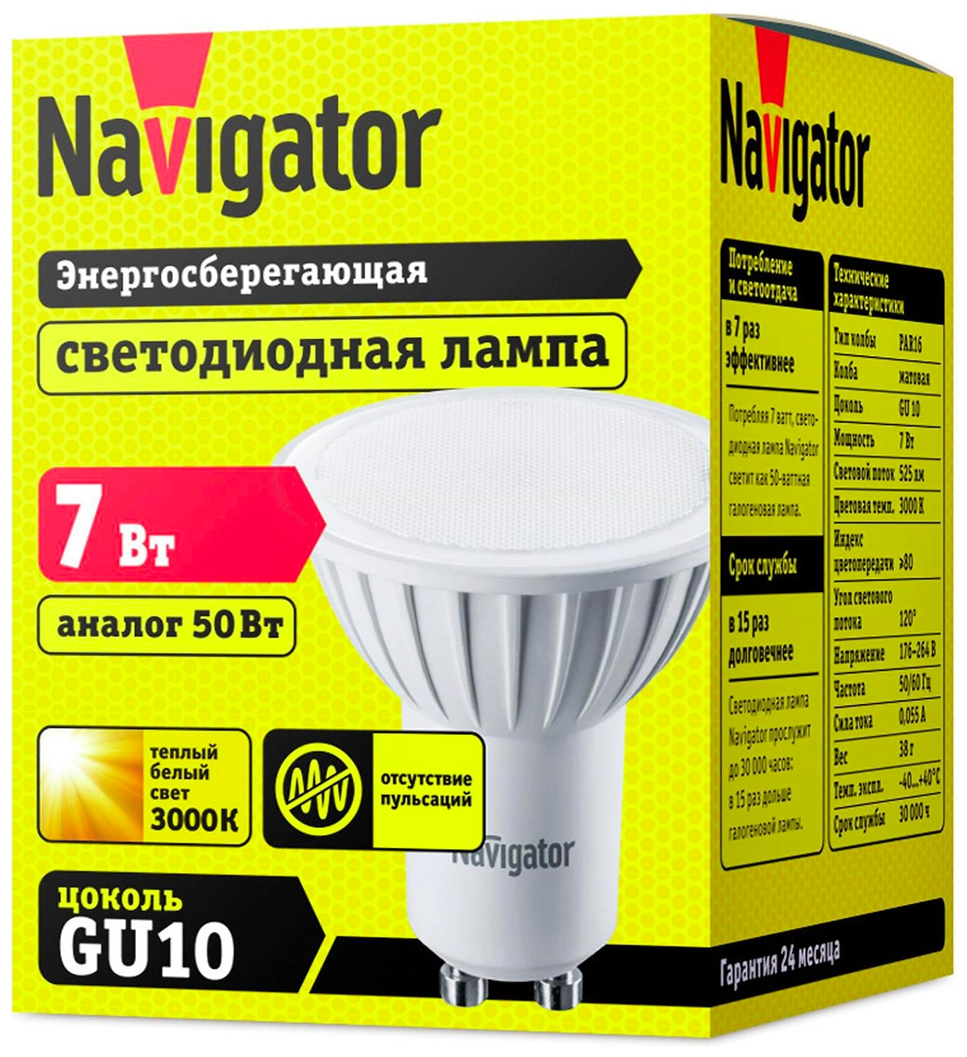 Navigator NLL-PAR16 GU10 7 Вт - рефлекторная светодиодная лампа с теплым белым свечением.