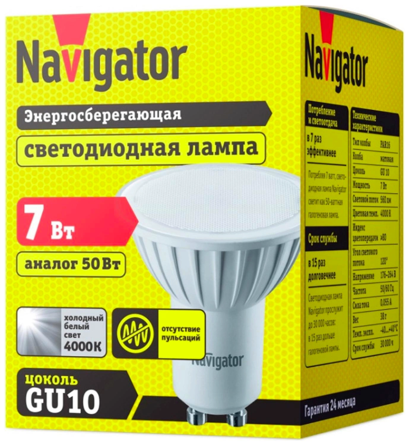 Navigator NLL-PAR16 GU10 7 Вт - рефлекторная светодиодная лампа с холодным белым свечением.