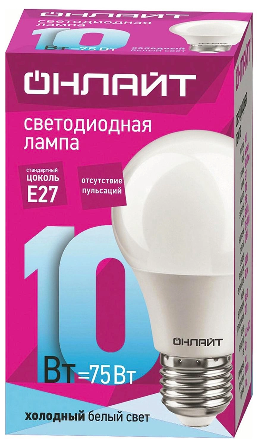 Светодиодная лампа Онлайт ОLL-A E27 10 Вт 820 лм 4000 К шар идентична вольфрамовым аналогам мощностью 75 Вт. Холодный белый источник света - подходящее решение для рабочей зоны.