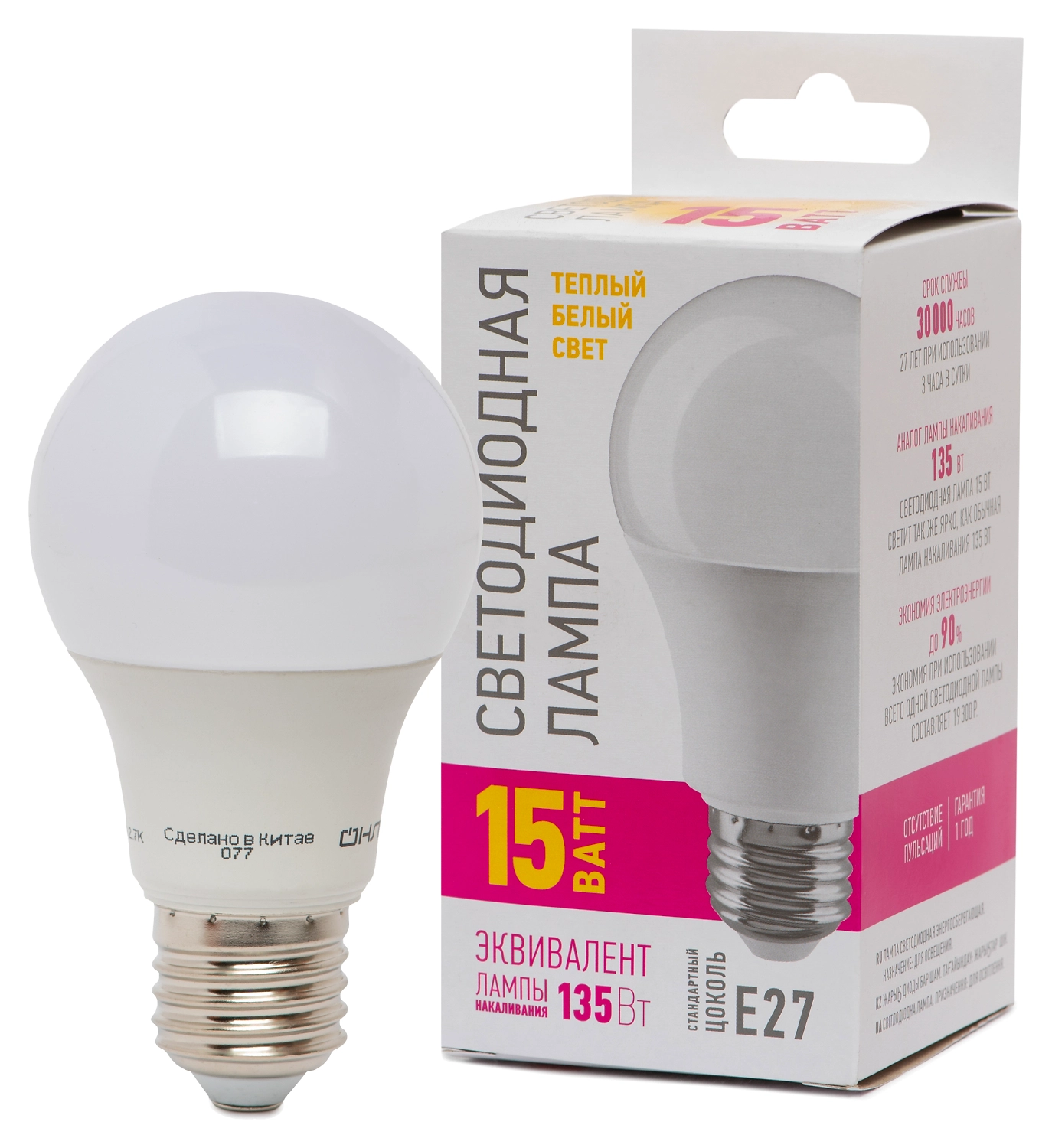 Светодиодная лампа Онлайт OLL-A60 Е27 15 Вт 1350 лм 2700 К груша