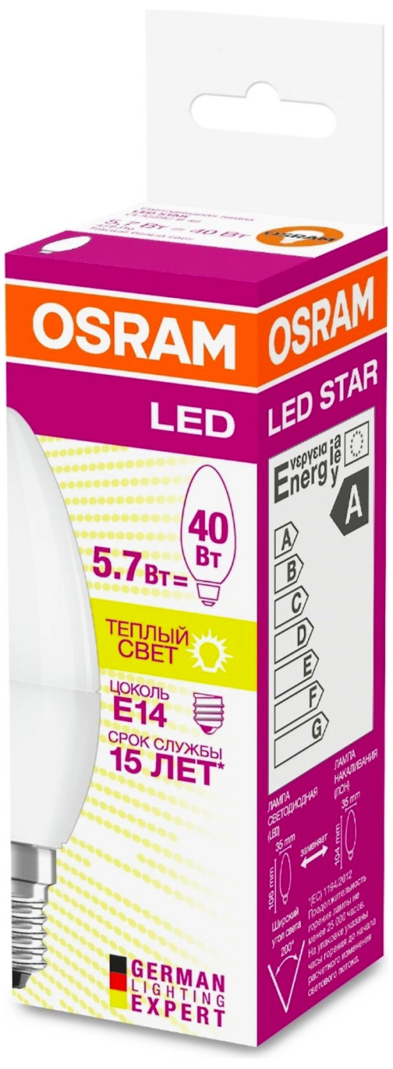 Светодиодная лампа OSRAM CLASSIC B E14 5,7 Вт рефлекторная 470 лм 3000 К свеча