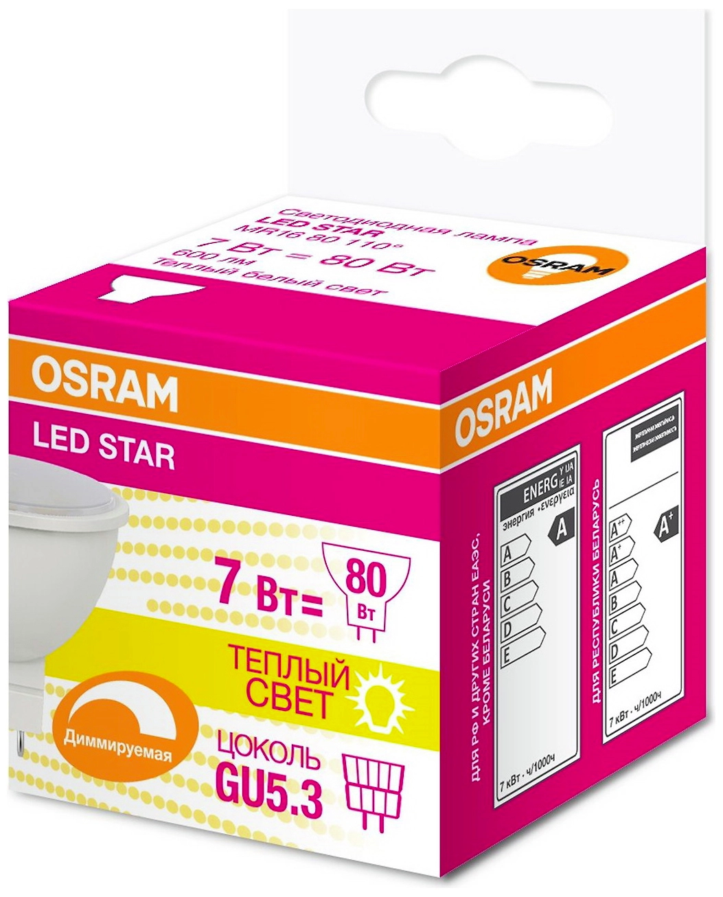 Светодиодная лампа OSRAM GU5.3 7 Вт рефлекторная - современная энергоэффективная альтернатива лампе накаливания мощностью 80 Вт.