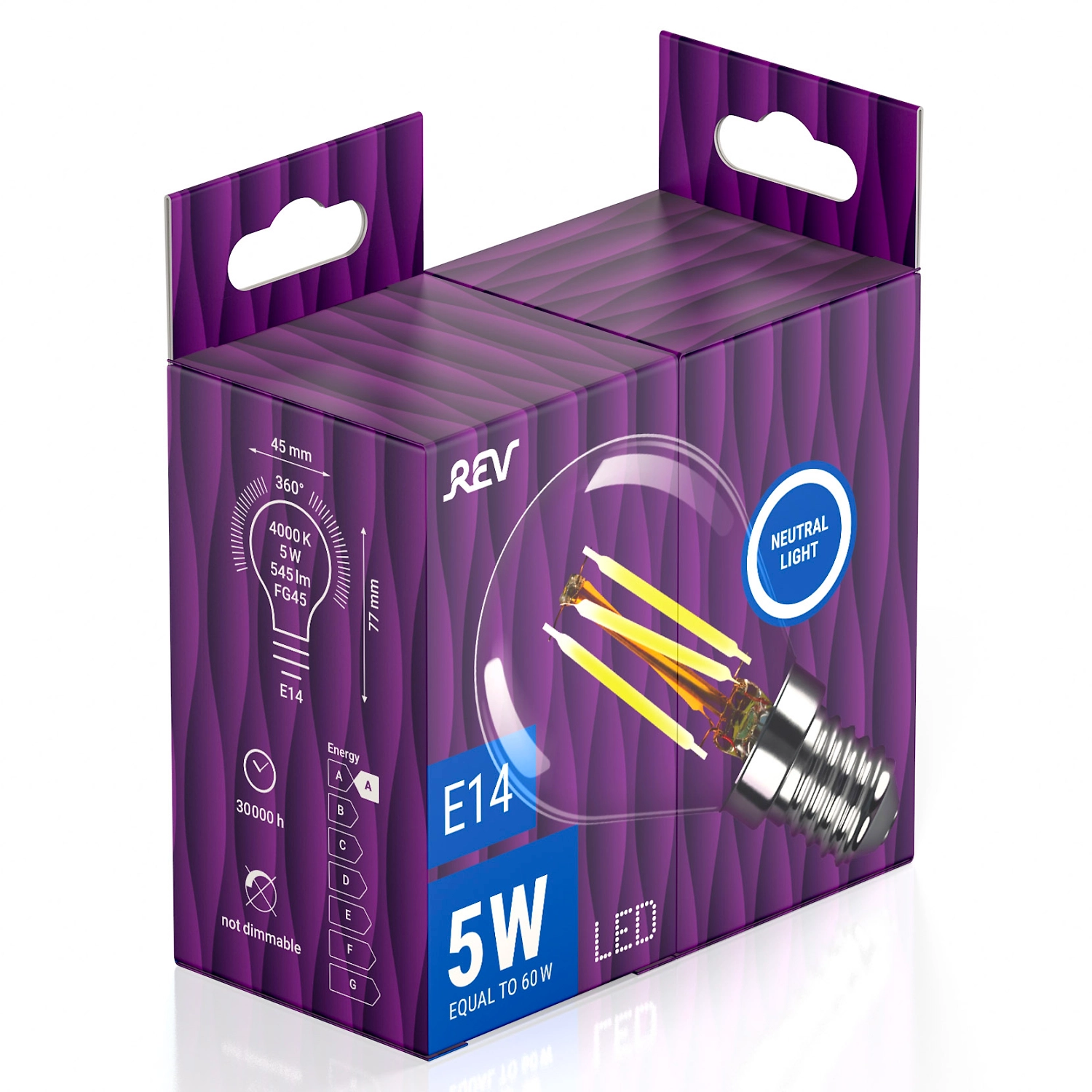 Светодиодная лампа REV Е14 5 Вт филаментная 545 лм 4000 К шар