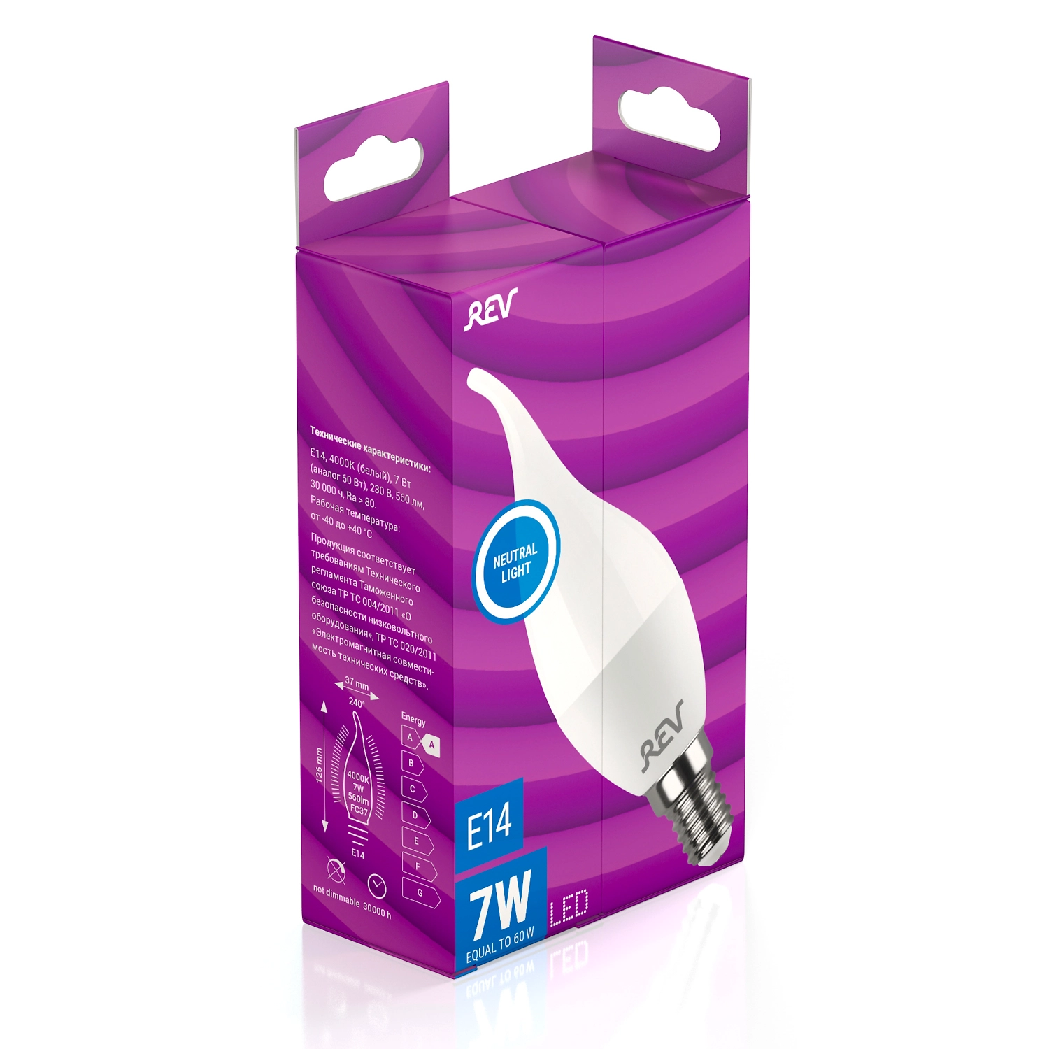 Светодиодная лампа REV Е14 7 Вт 560 лм 4000 К свеча на ветру