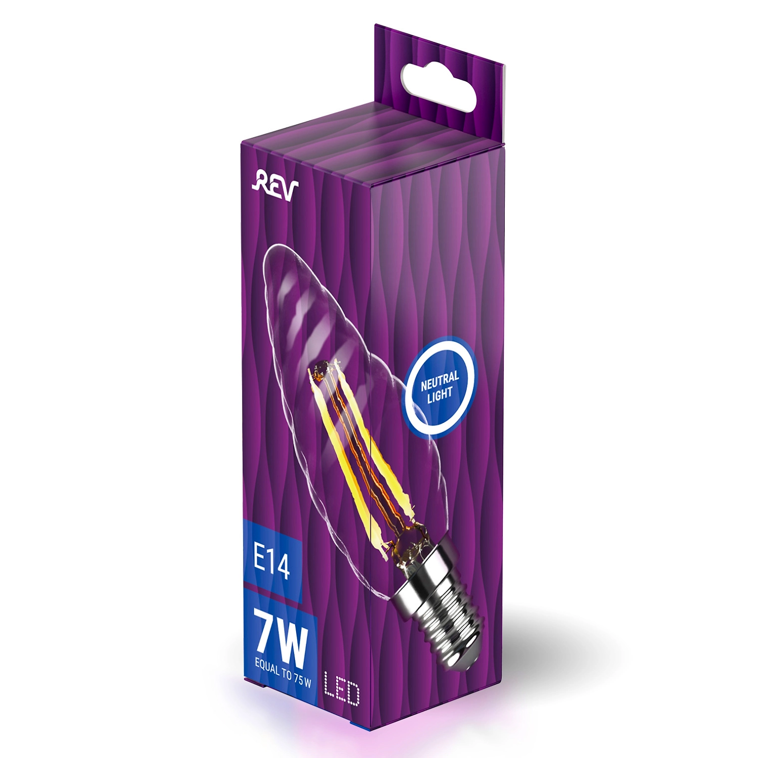 Светодиодная лампа REV Е14 7 Вт имеет нейтральный белый свет и оригинальную прозрачную колбу в виде витой свечи. Диоды особой формы имитируют нити классической лампы накаливания.