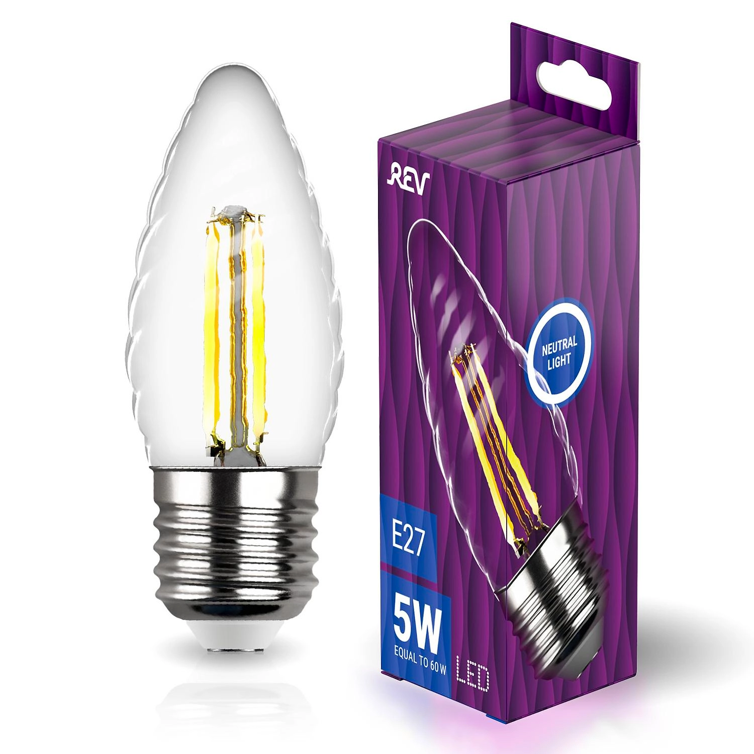 Светодиодная лампа REV E27 5 Вт филаментная 545 лм 4000 К витая свеча