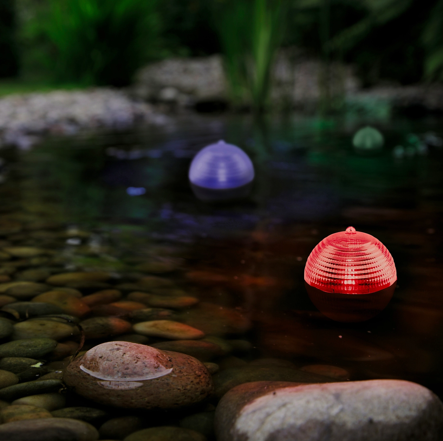 Светодиодные фонари применяют для освещения искусственных и естественных прудов, небольших озер, фонтанов. Единственное условие для их устойчивой работы - отсутствие течения. Светильники придают оригинальность водоему, подсвечивают растительность в ночное время. Подсветка из фонариковлегко монтируется: достаточно разложить элементы по поверхности в хаотичном порядке.