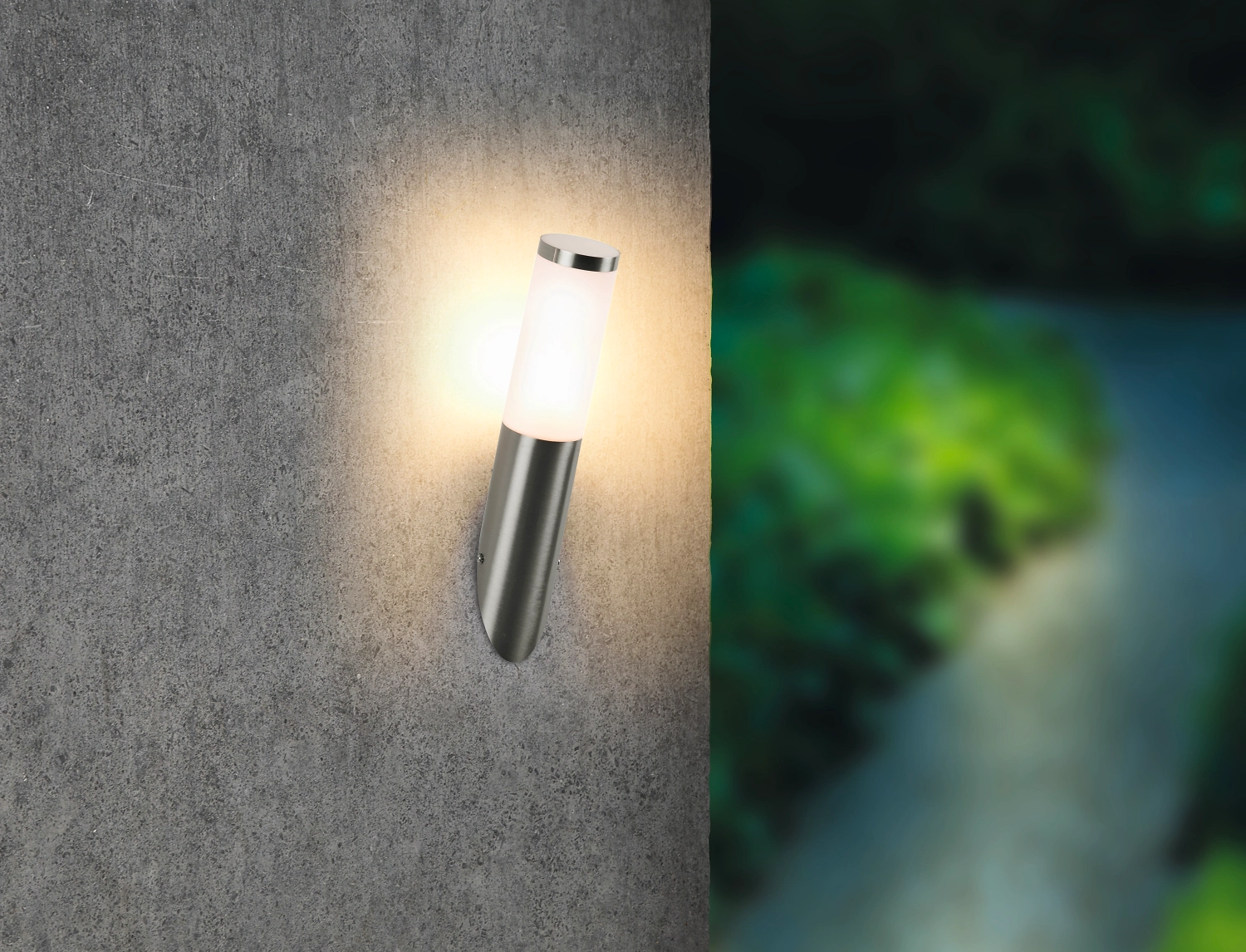 Уличное бра Trunca - лаконичный светильник цилиндрической формы в современном стиле. Прочное основание из нержавеющей стали позволяет использовать прибор на открытом воздухе в качестве дополнительного источника света для придомовой территории.
