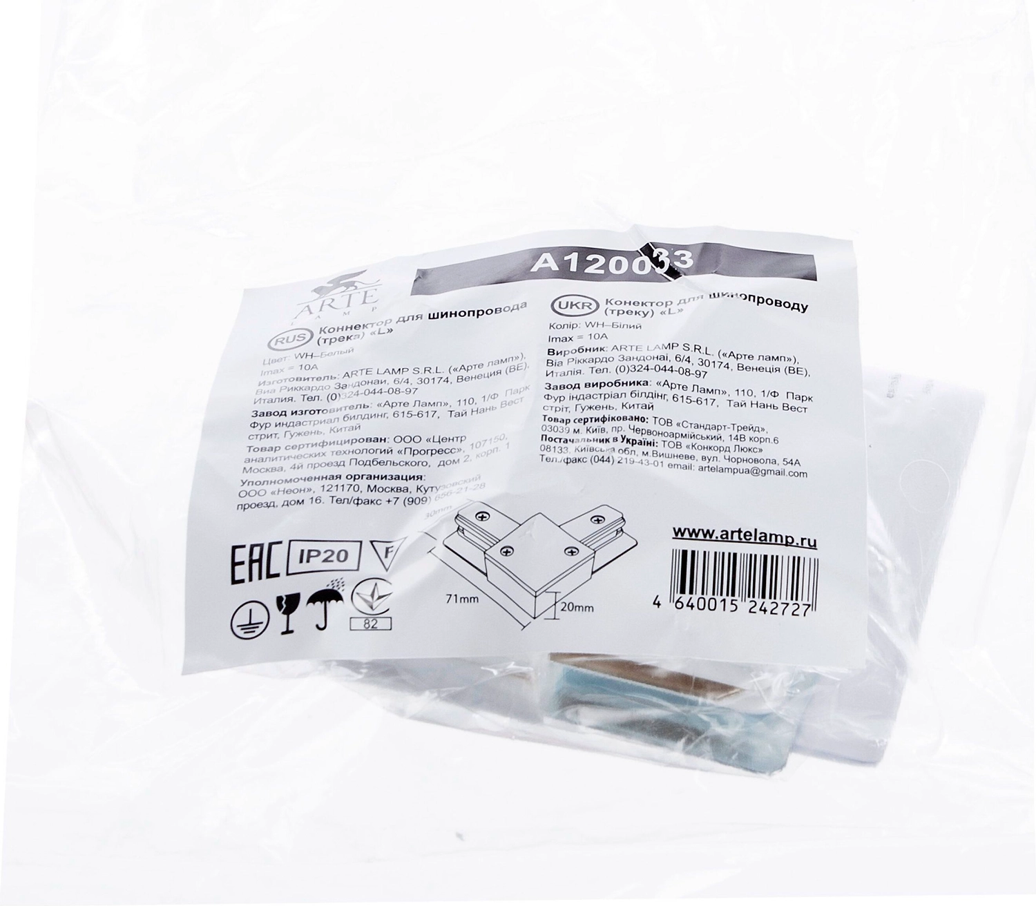Коннектор для шинопровода ARTE Lamp A120033 7 см белый