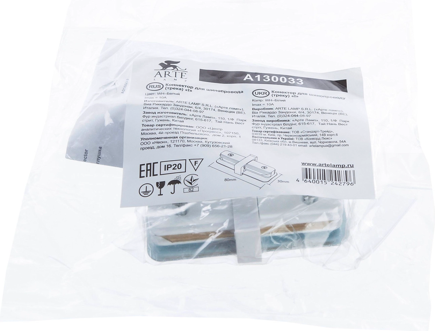 Коннектор для шинопровода ARTE Lamp A130033 8 см белый