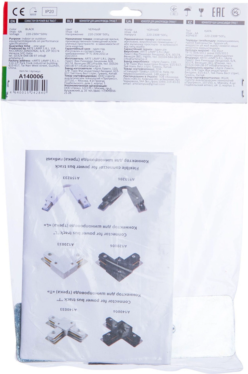Коннектор для шинопровода ARTE Lamp A140006 11 см черный