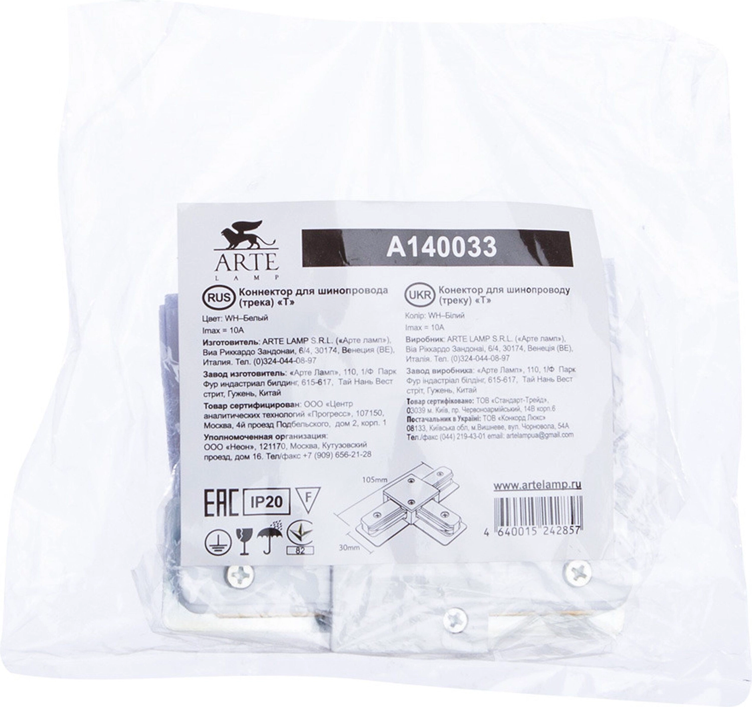 Коннектор для шинопровода ARTE Lamp A140033 11 см белый
