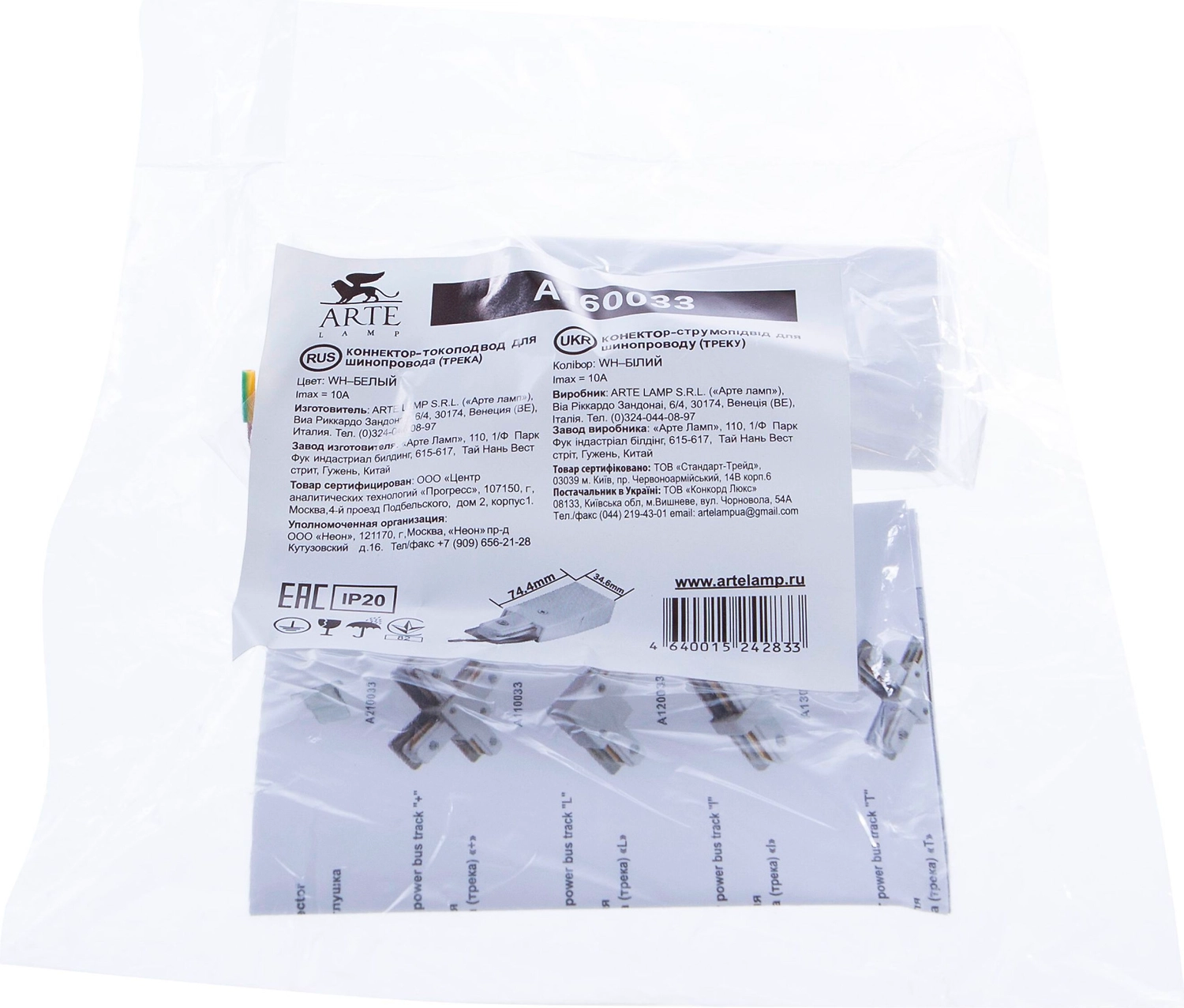 Коннектор для шинопровода ARTE Lamp A160033 11 см белый