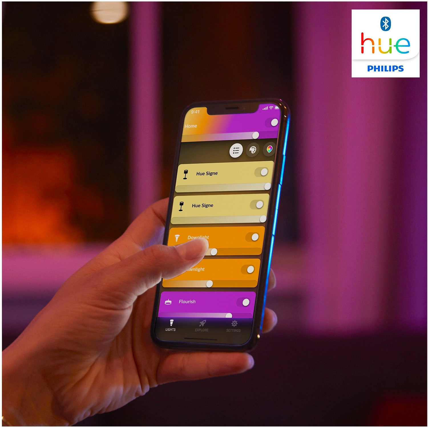 Создайте настроение в любой комнате вашего дома со стильным светильником Philips Hue Iris черного цвета. Благодаря свету, который одновременно раскрашивает стену и обеспечивает мягкую подсветку, светильник Iris создает изысканный и уникальный эффект. Добавьте блок управления Hue Bridge, чтобы воспользоваться полным набором функций умного освещения.