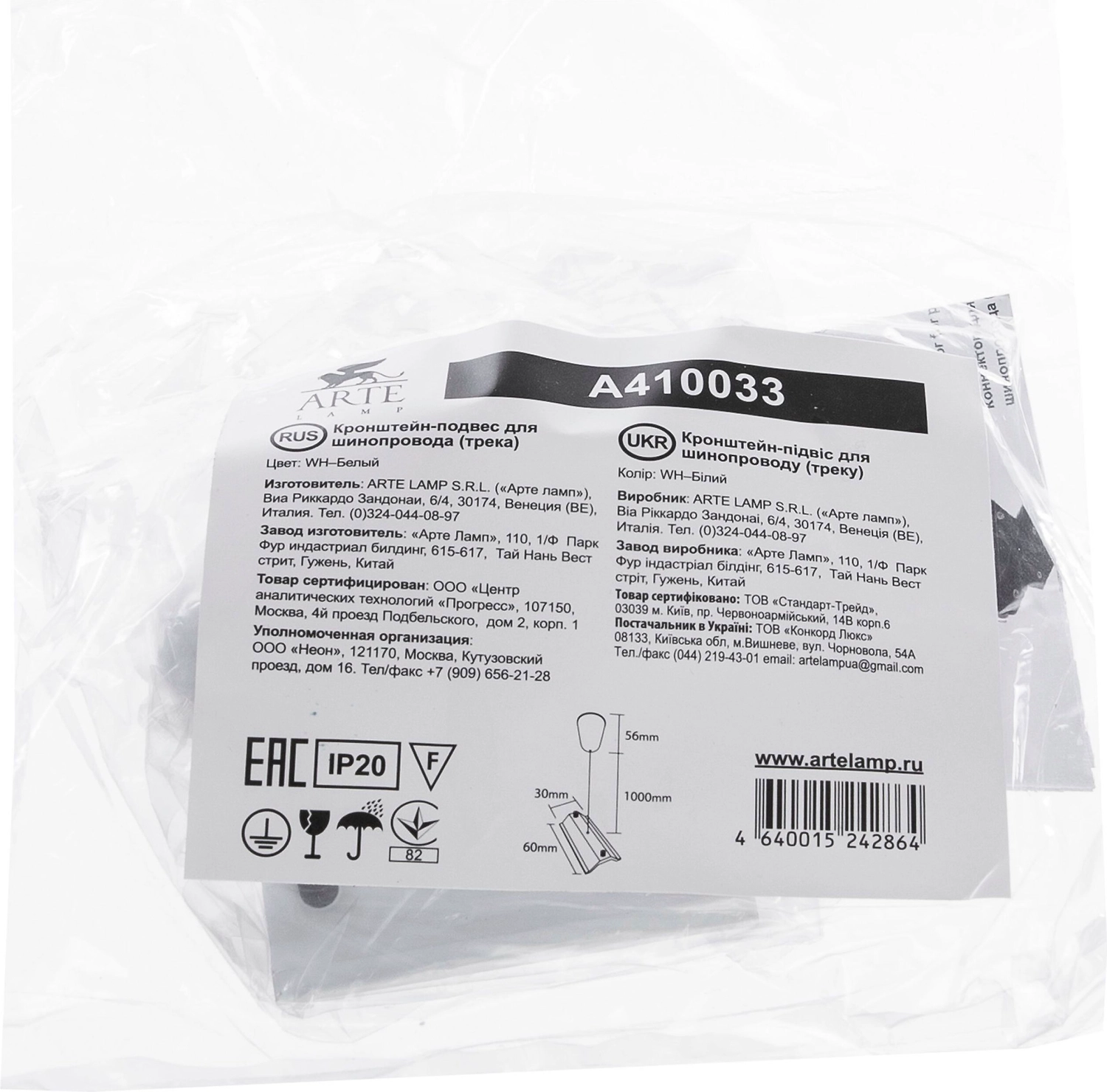 Подвес для шинопровода ARTE Lamp A410033 6x3 см белый