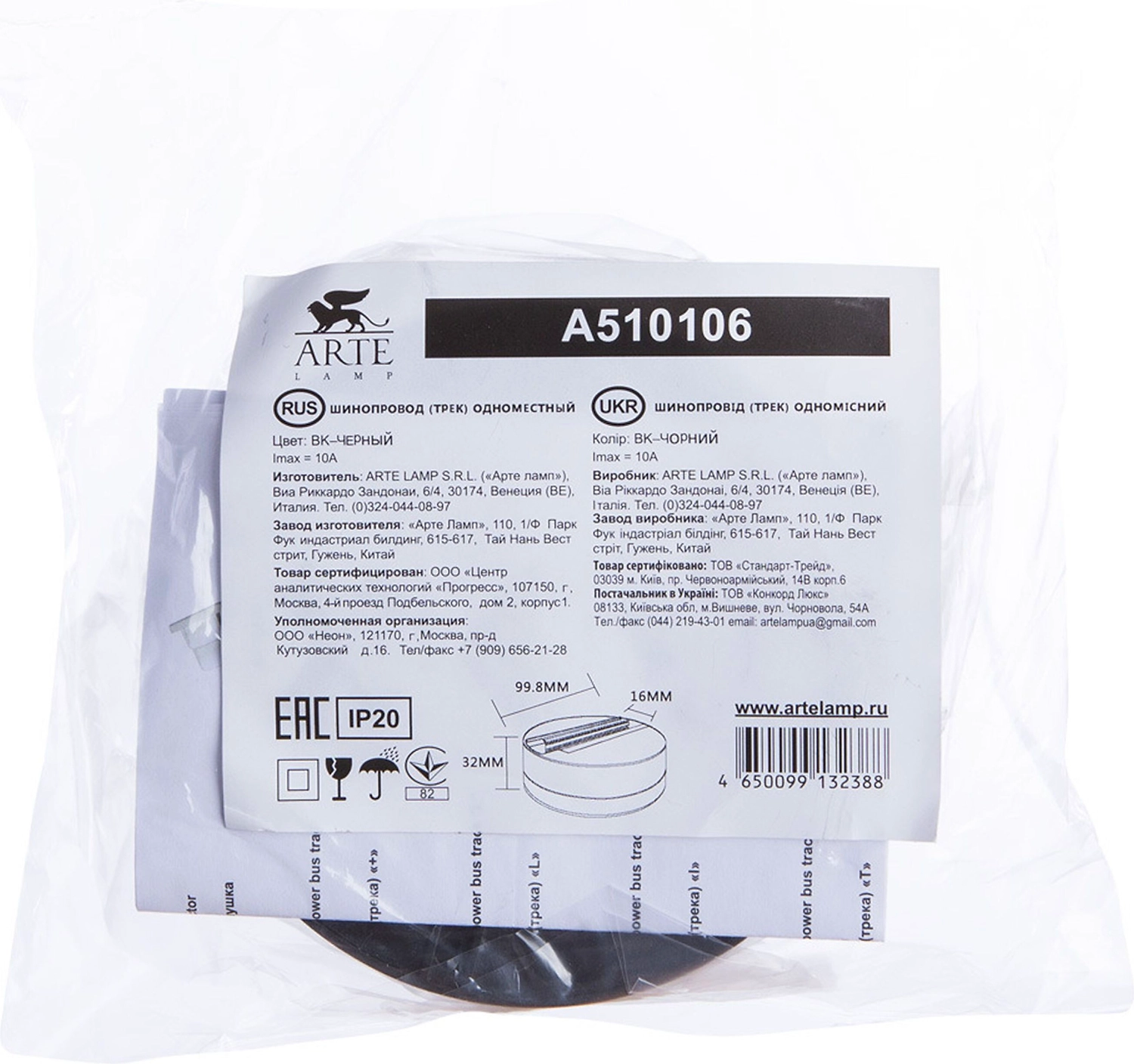 Шинопровод для трековой системы ARTE Lamp A510106 10 см черный