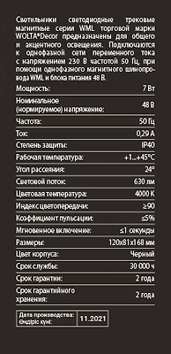 Светильник WMLS-7W/01B трековый магнитный 7 Вт 4000К