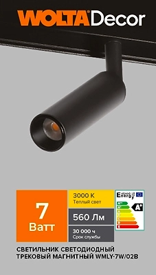 Светильник WMLY-7W/02B трековый магнитный 7 Вт 3000К