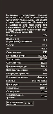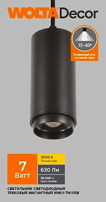 Светильник WMLY-7W/03B трековый магнитный 7 Вт 3000К