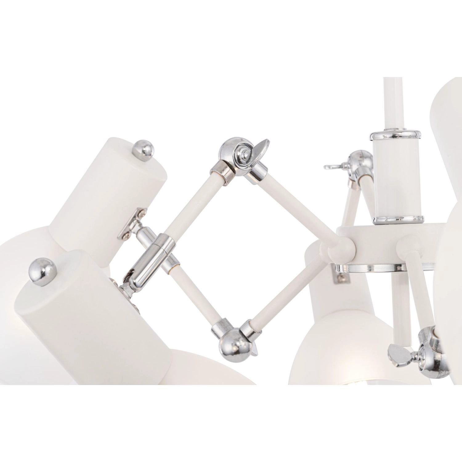 Серия Avery, современная и функциональная, позволяет отрегулировать направление света по желанию клиента. Рожки имеют подвижное сочленение посередине. Плафоны, выполненные из белого матового стекла, поворачиваются в вертикальной плоскости. Небольшая высота люстр позволяет использовать их в помещениях с невысоким потолком. Серия включает 2 люстры на 6 и 8 рожков и бра.