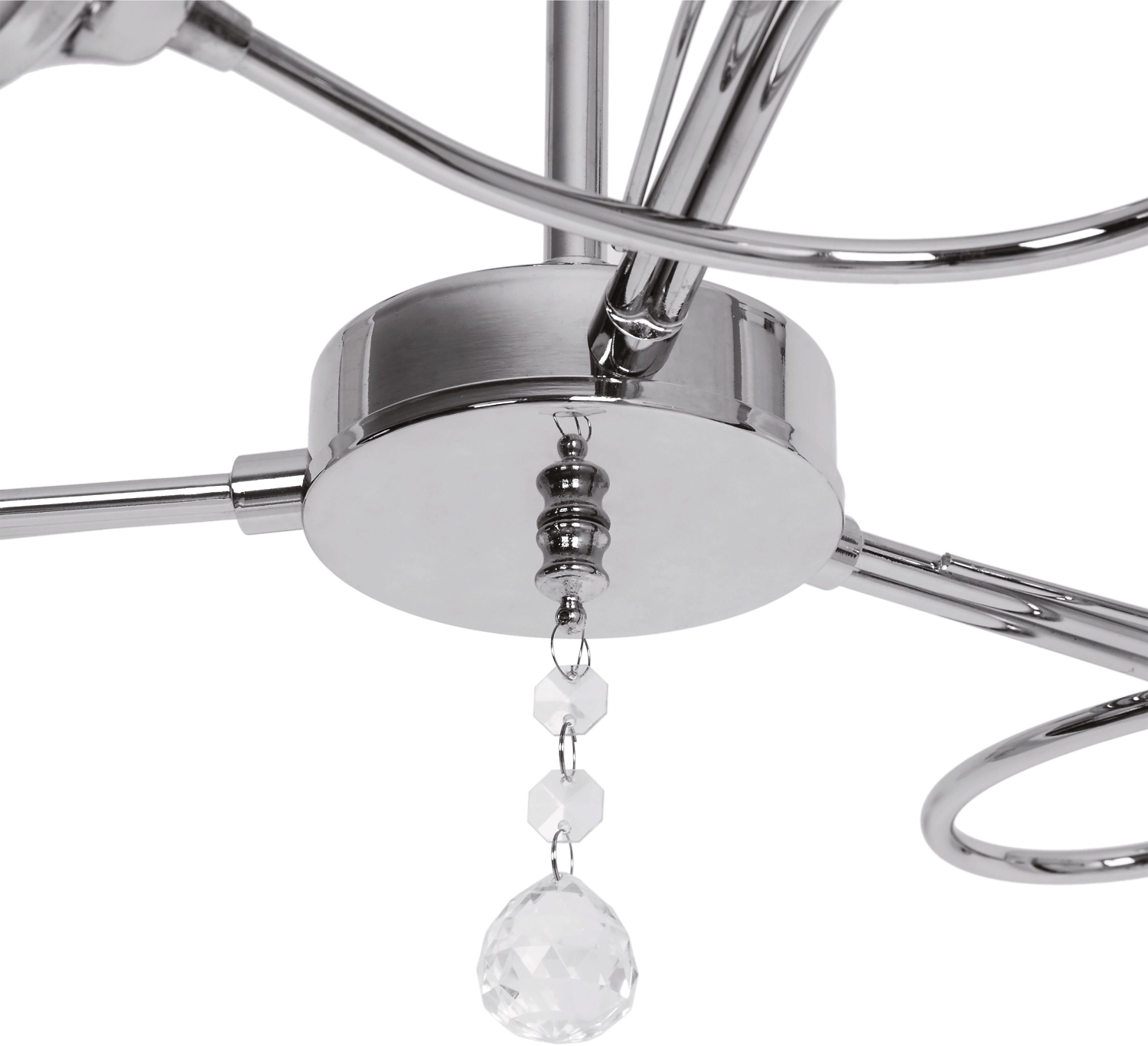 Шестирожковая люстра в стиле современная классика станет сдержанным и элегантным украшением интерьера. Сочетание зеркального блеска хромированного основания и белого матового стекла придает светильнику стильный вид, делает его дизайн универсальным.