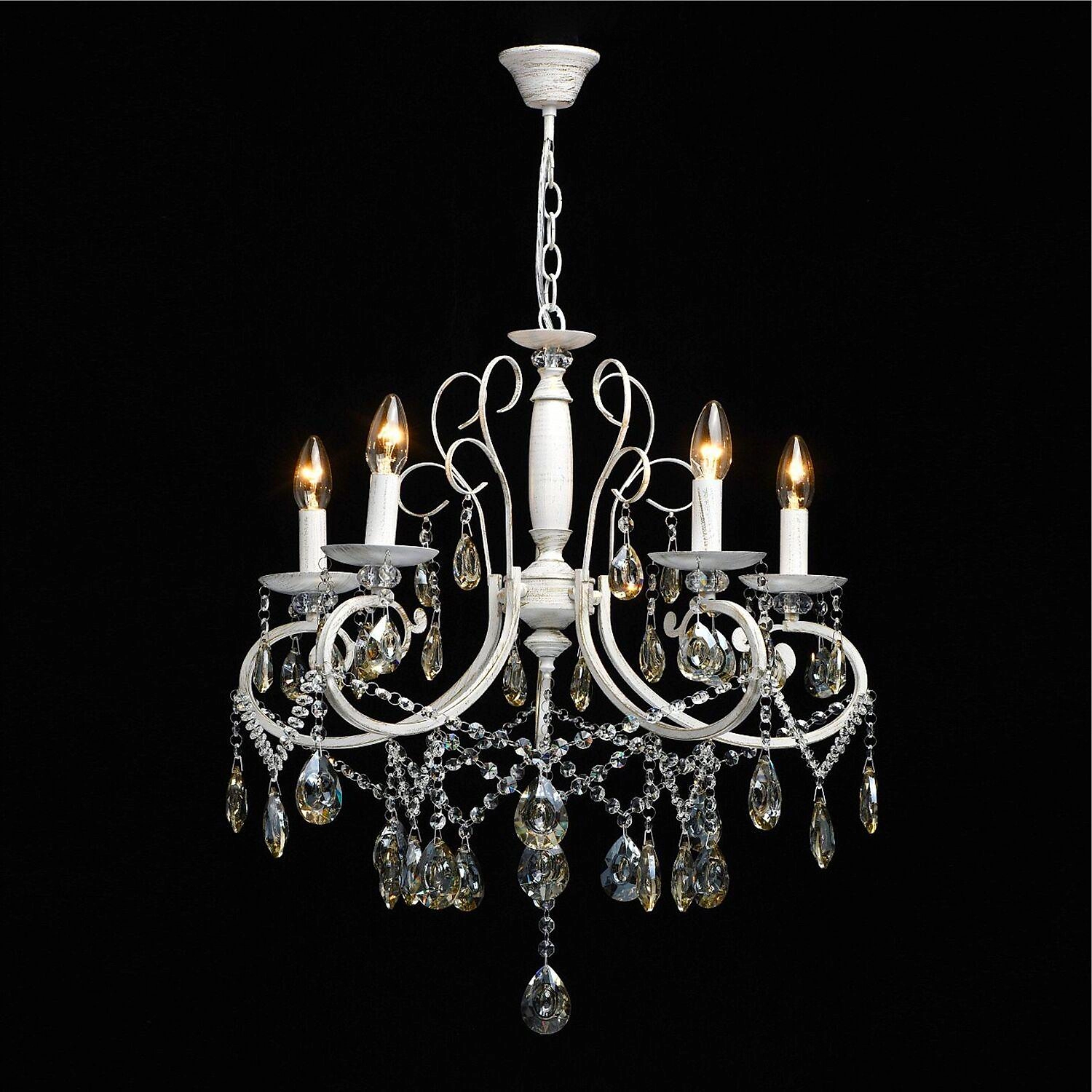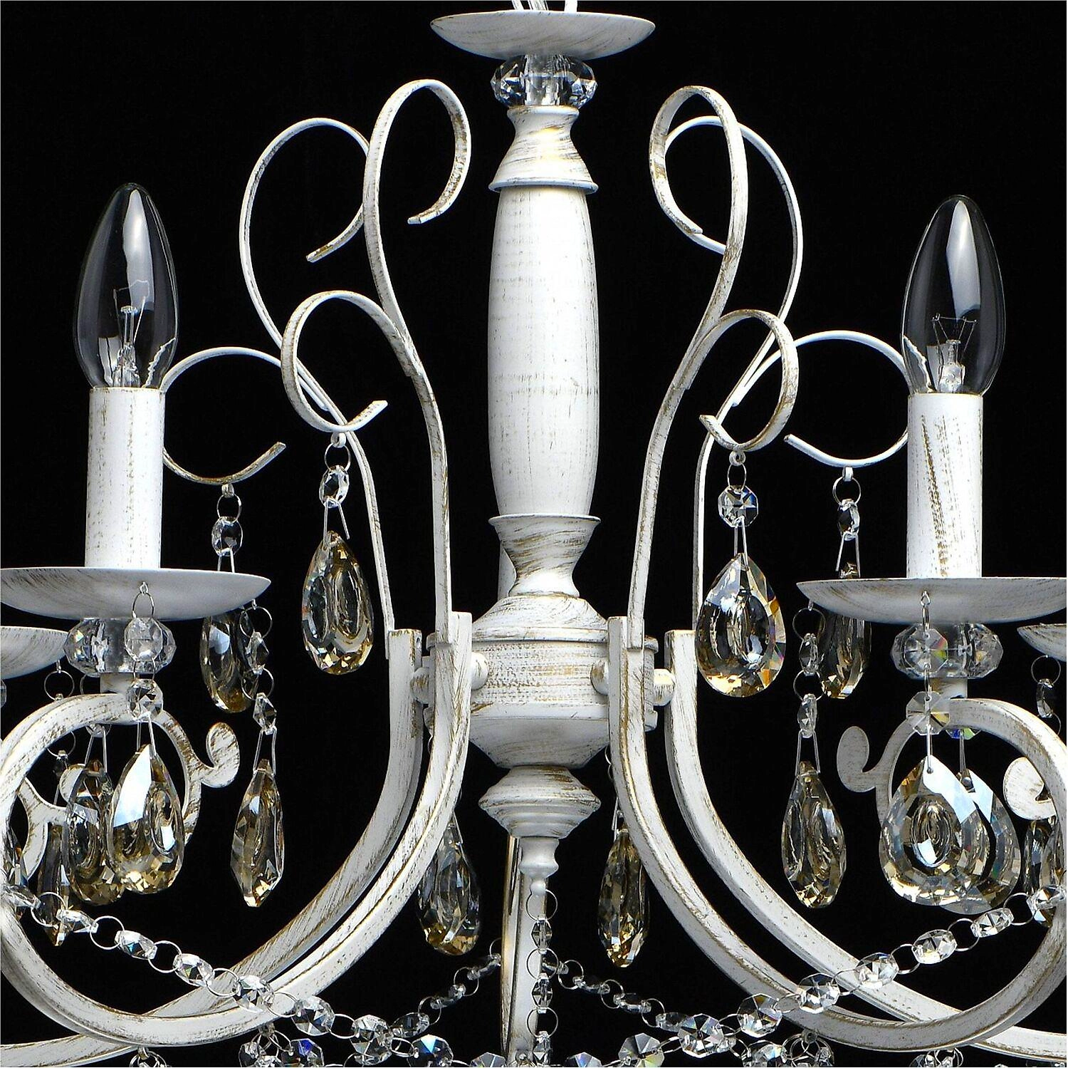 Люстра De City Классик Белая 5х60 Вт - отличное дополнение интерьера в традиционных стилях. Искусственно состаренный металлический каркас добавит помещению нотку винтажного европейского шика.