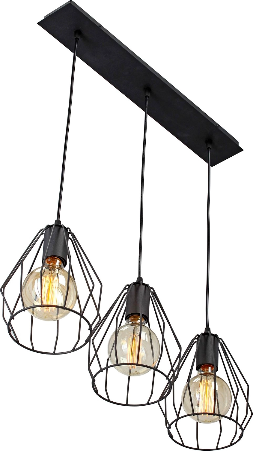 Подвесная люстра Vitaluce в черном цвете выполнена в стиле Лофт, но может прекрасно дополнить различные по стилю интерьеры. Расчитана на 3 лампы мощностью 60Вт для эффективного освещения 9м² помещений. Крепится к потолку с помощью планки и имеет тип цоколя - E27. Основание и плафоны изделия выполненны из металла.