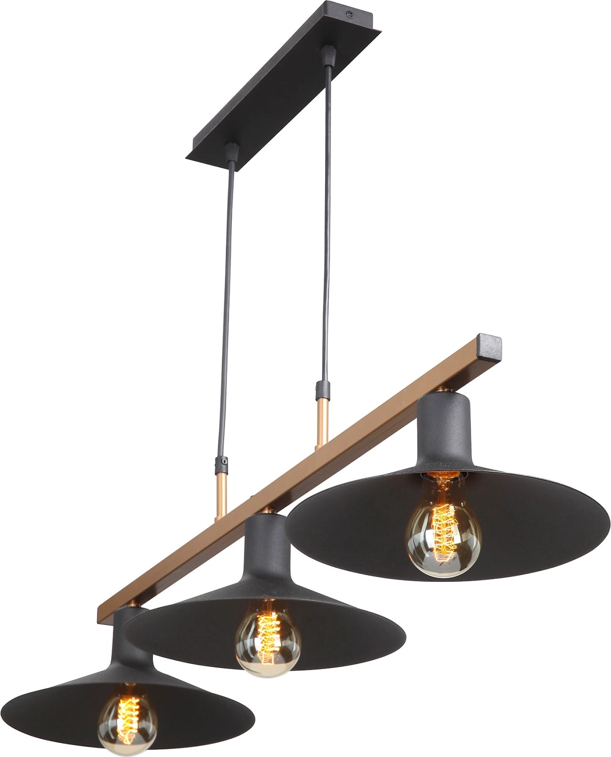 Подвесная люстра Vitaluce в черном цвете выполнена в стиле Ар-деко, но может прекрасно дополнить различные по стилю интерьеры. Расчитана на 3 лампы мощностью 40Вт для эффективного освещения 9м² помещений. Крепится к потолку с помощью планки и имеет тип цоколя - E27. Основание и плафоны изделия выполненны из металла.