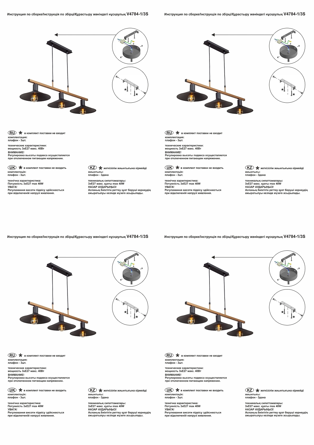 Лампочки в комплект не входят, не забудьте их приобрести.
