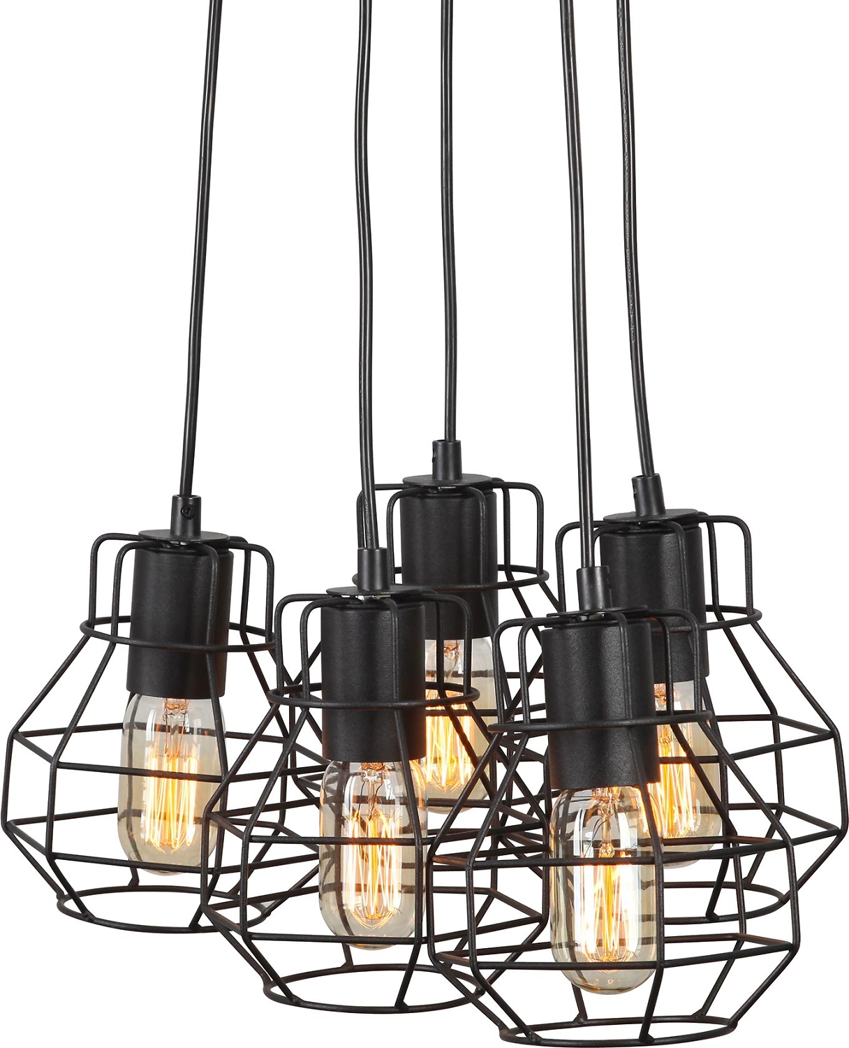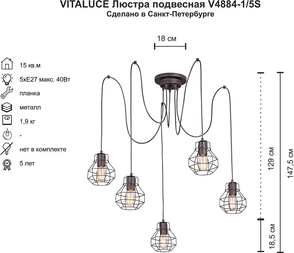 Подвесная люстра Vitaluce в черном цвете выполнена в стиле Лофт, но может прекрасно дополнить различные по стилю интерьеры. Расчитана на 5 ламп мощностью 40Вт для эффективного освещения 15м² помещений. Крепится к потолку с помощью планки и имеет тип цоколя - E27. Основание и плафоны изделия выполненны из металла.