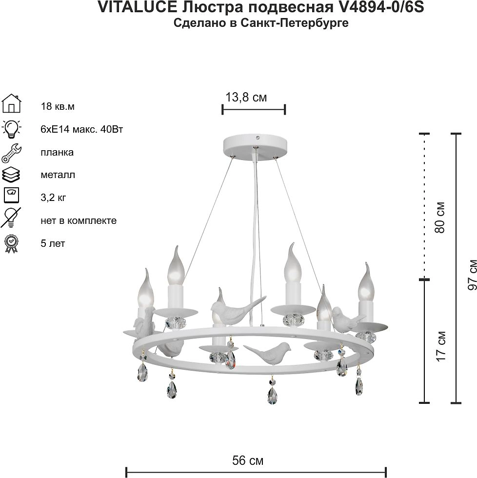 Подвесная люстра Vitaluce V4894-0/6S белая 6ХE14Х40Вт