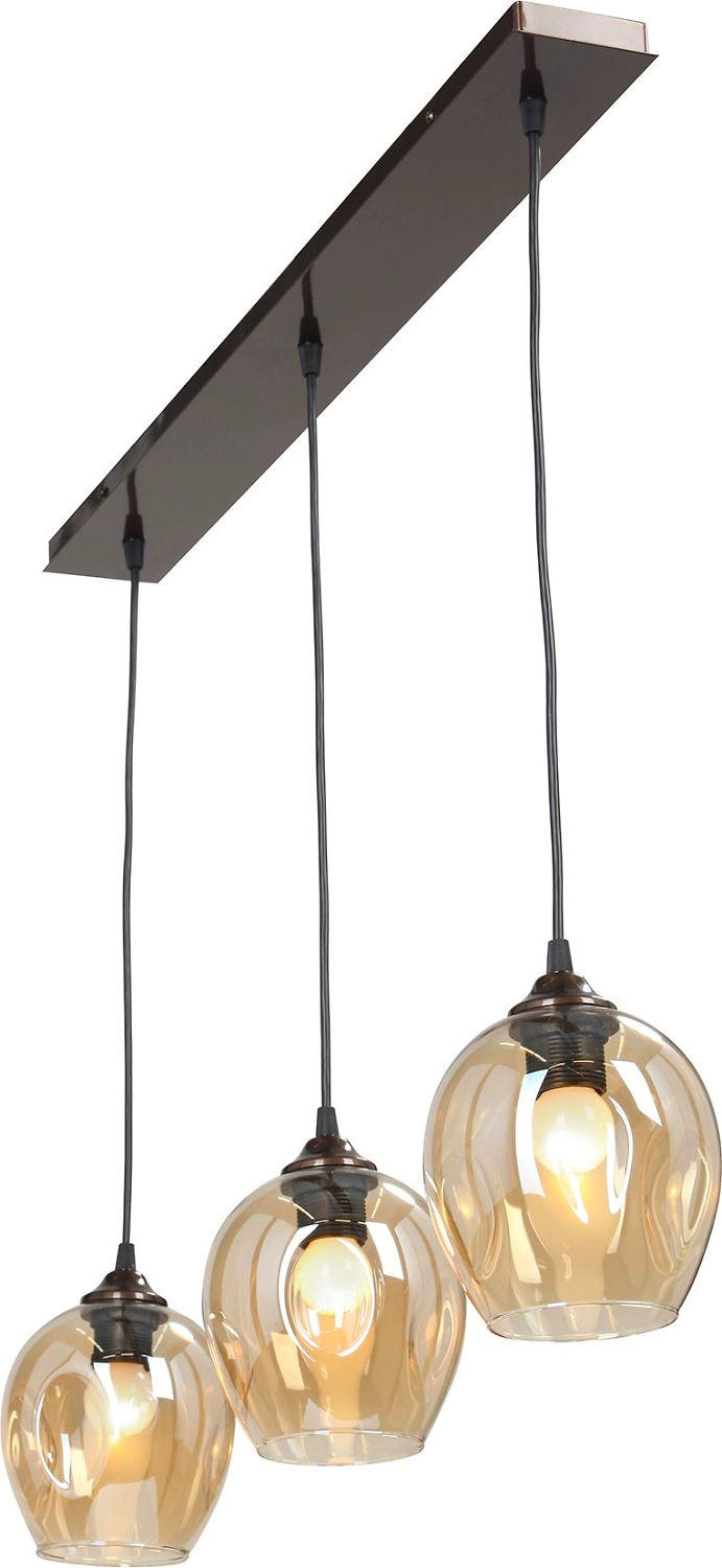 Подвесная люстра Vitaluce в бронзовом цвете выполнена в стиле Ар-деко, но может прекрасно дополнить различные по стилю интерьеры. Расчитана на 3 лампы мощностью 40Вт для эффективного освещения 9м² помещений. Крепится к потолку с помощью планки и имеет тип цоколя - E27. Основание изделия выполненно из металла, плафоны - стекло.