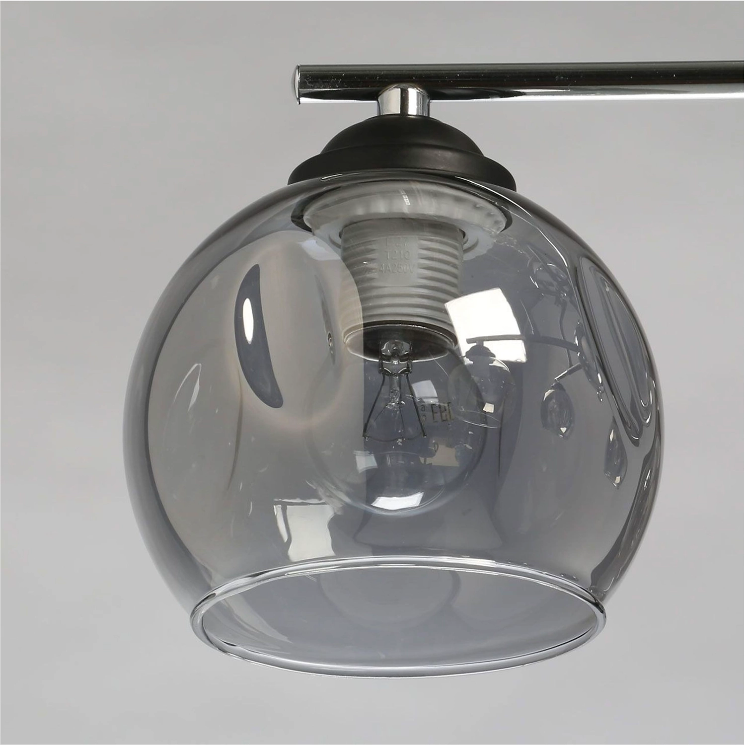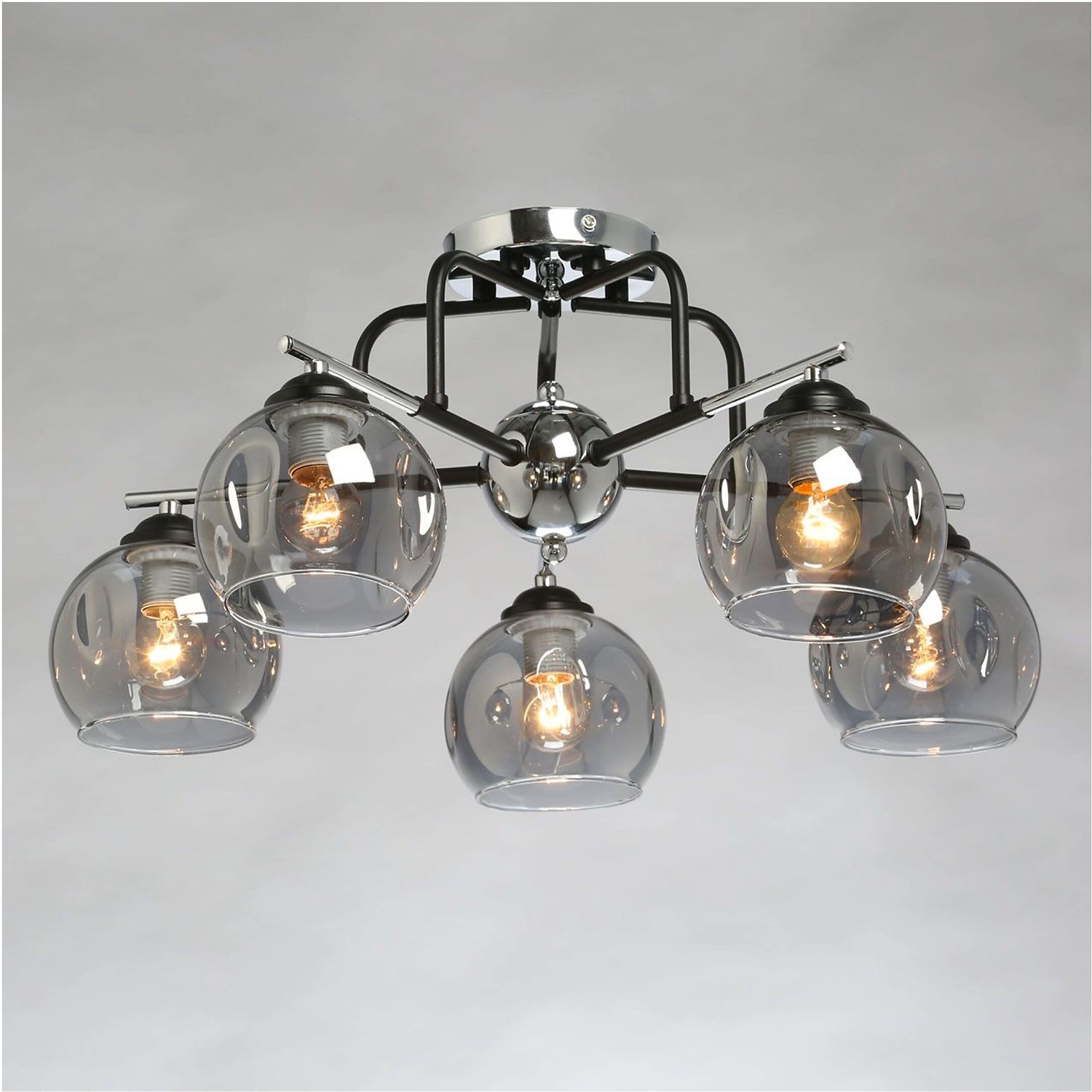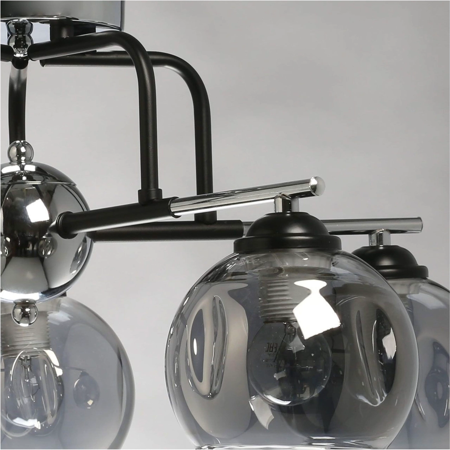 Актуальная комбинация металлов черного цвета и хрома. Стеклянные тонированные плафоны дымчатого цвета обеспечивают комфортный световой поток.