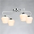 Необычная воздушная конструкция светильника как элемент дизайна. Актуальная комбинация металлов основания белого цвета и хрома. Стеклянные матовые плафоны оригинальной формы. Заменяемые источники света удобны в эксплуатации.
