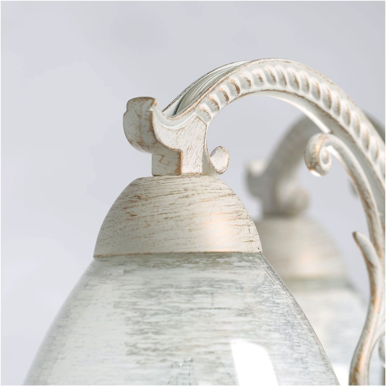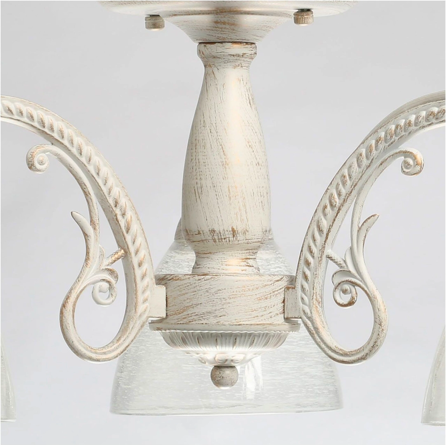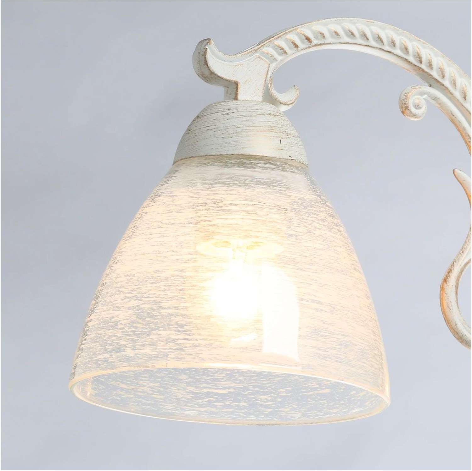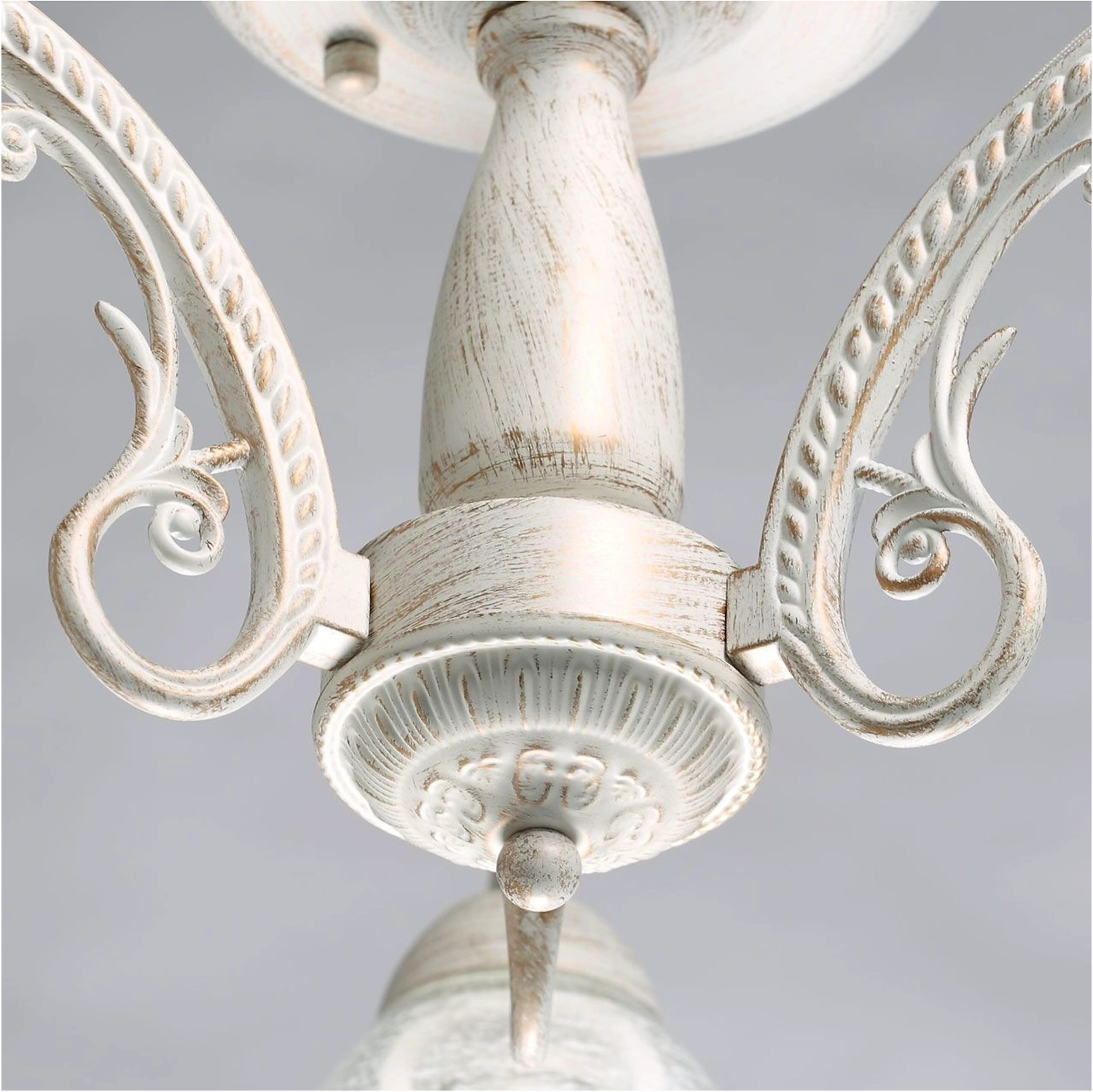 Универсальная модель для интерьеров различной тематики. Стеклянные плафоны с рисунком обеспечивают высокую степень освещенности. Фигурные рожки художественного литья белого цвета, вручную патинированы золотистой краской. Компактные размеры высоты светильника подойдут для стандартных потолков. Заменяемые источники света удобны в эксплуатации.