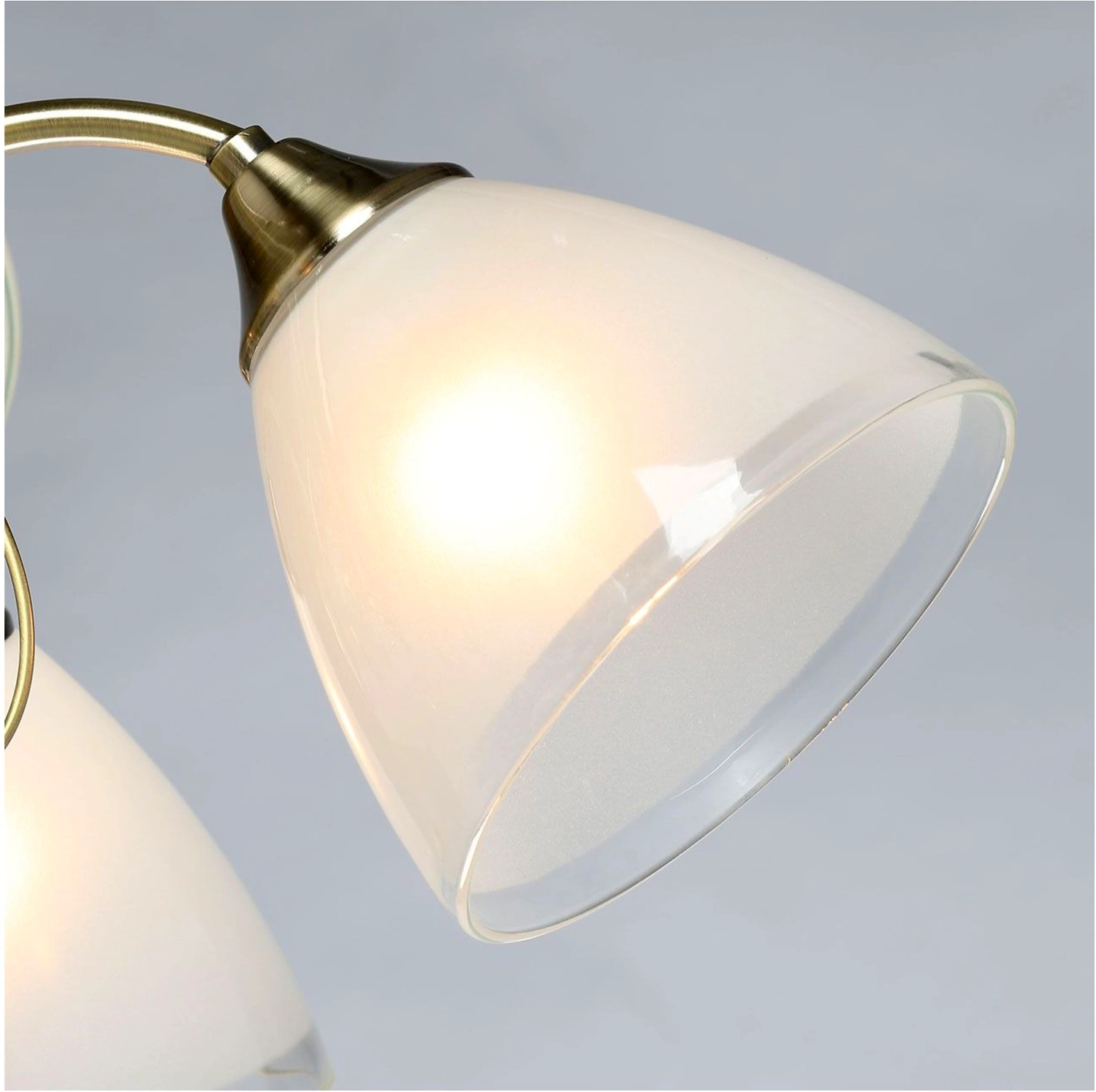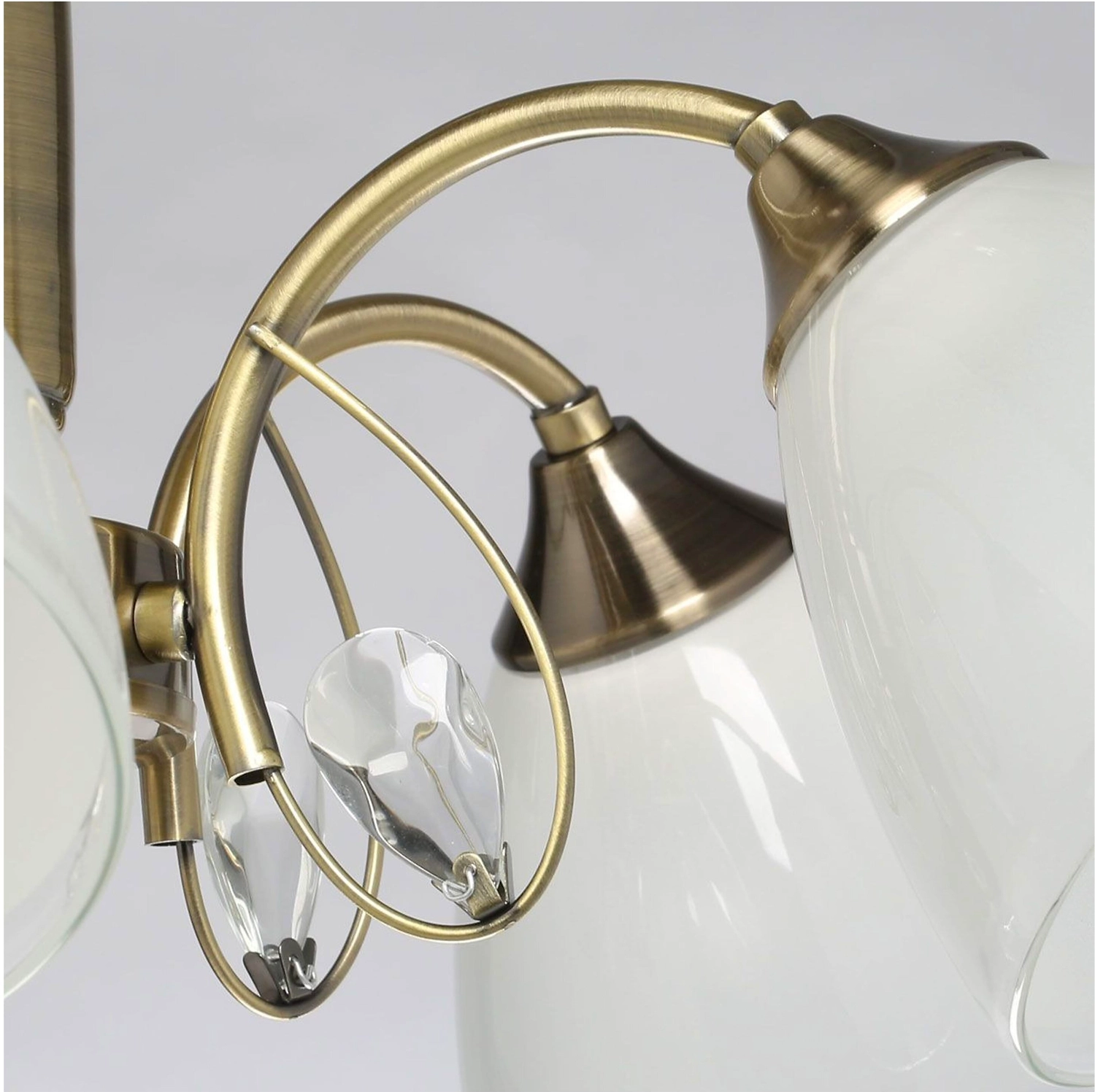 Лаконичный светильник в неоклассическом стиле. Стеклянные матовые плафоны обеспечивают ровный световой поток. Металлическое основание в традиционном цвете античной бронзы.