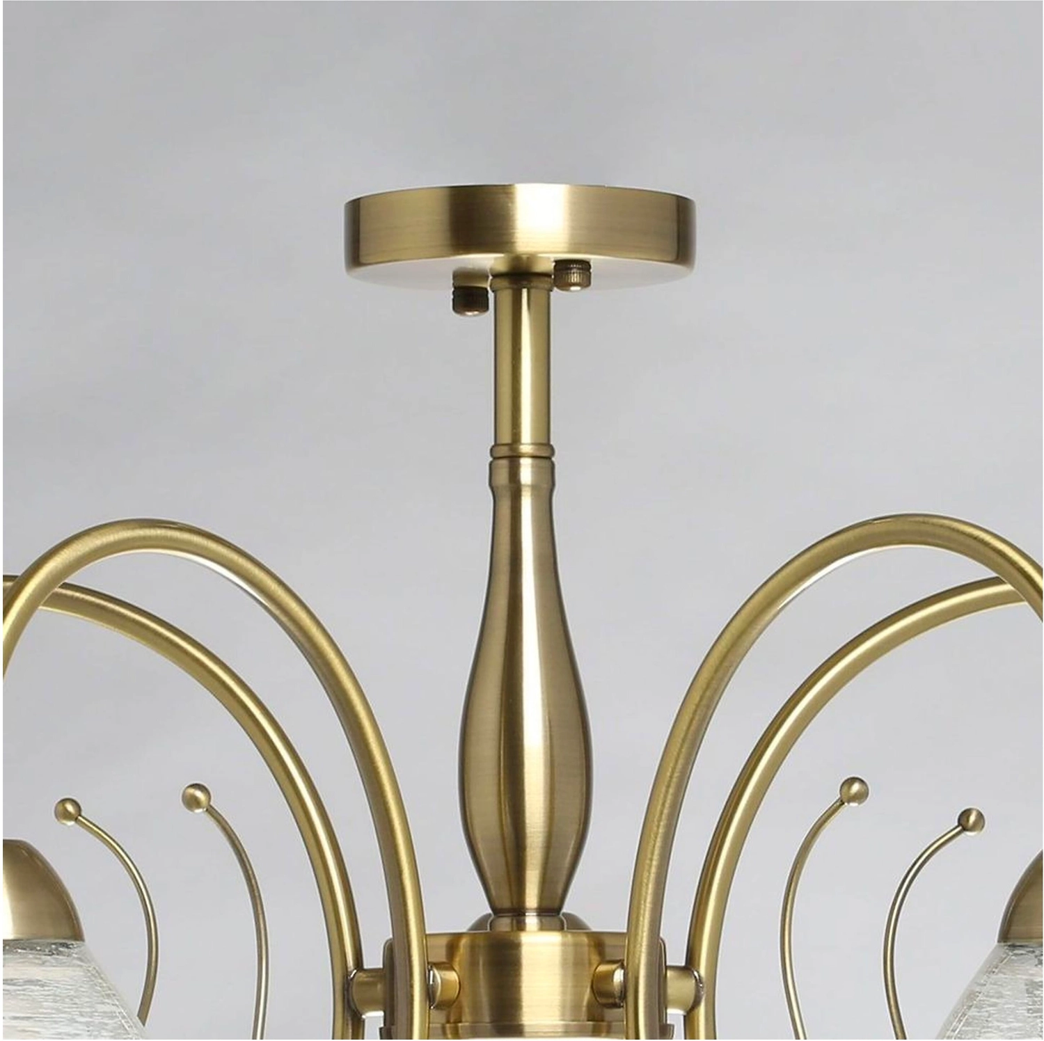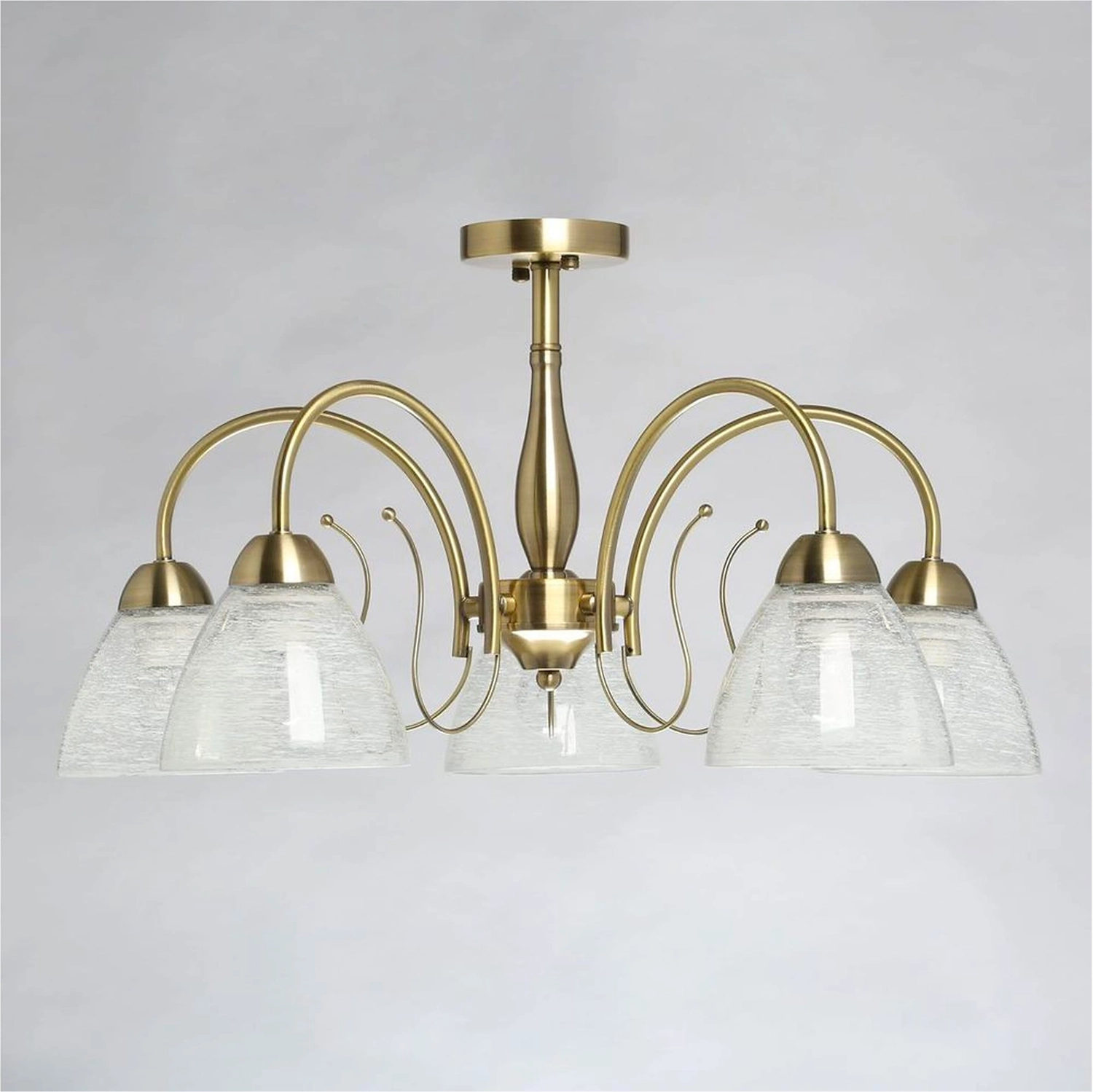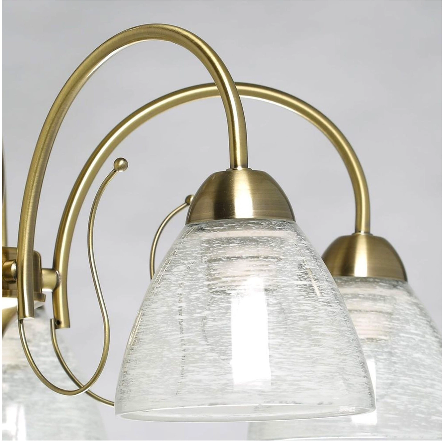 Дизайн для ценителей классических традиций. Металлический декор основания цвета античной бронзы добавляет легкости модели. Стеклянные полупрозрачные плафоны с рисунком отлично пропускают свет.