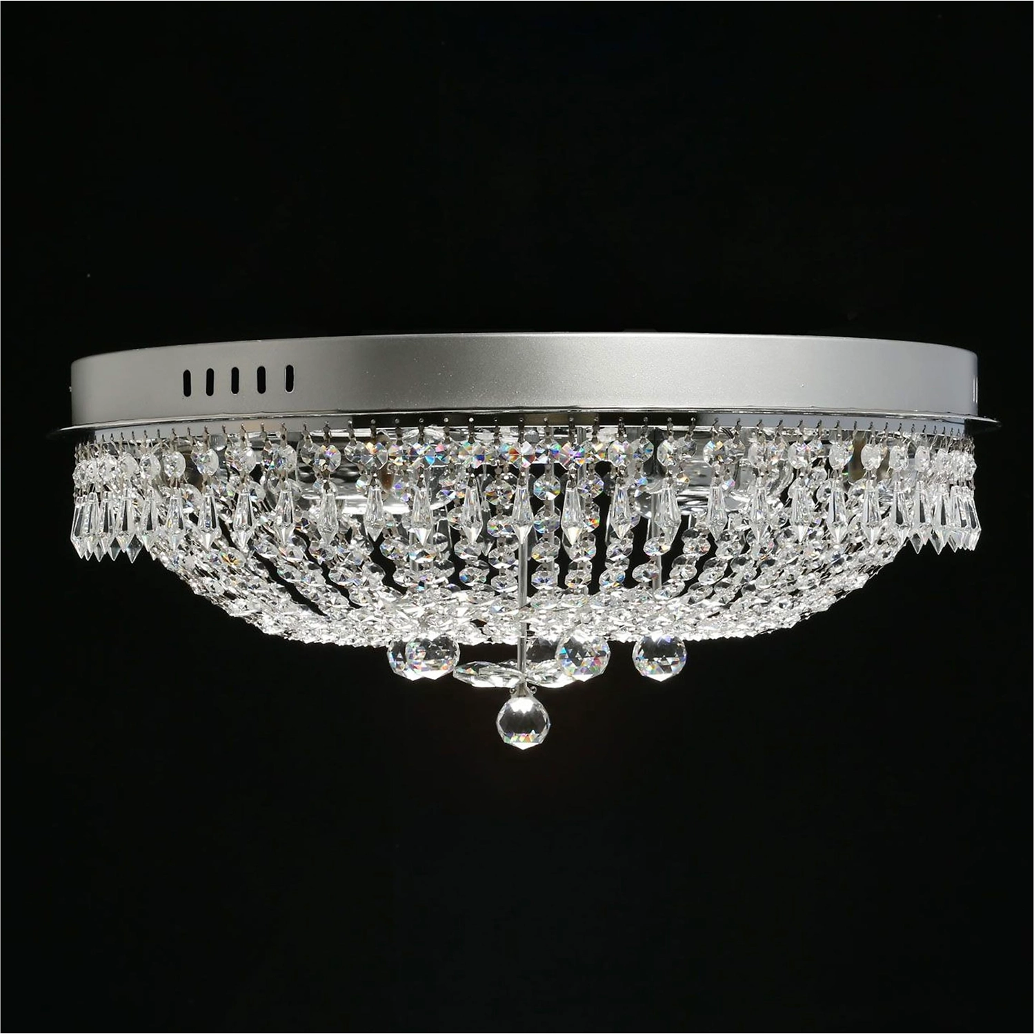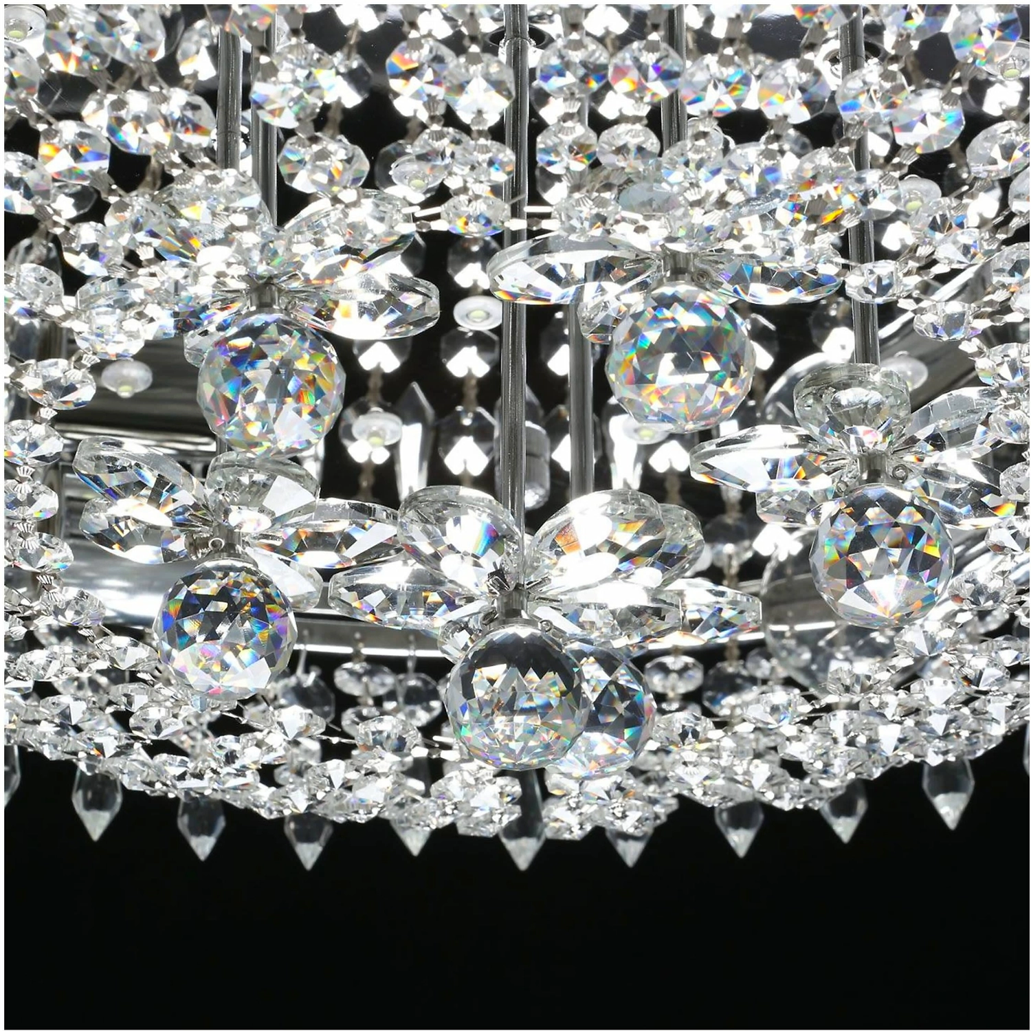 Прозрачный хрусталь разнообразной формы создает красивую игру света. Популярный цвет хрома основания всегда в тренде. Крупный хрустальный декор в форме соцветия в центре композиции добавляет ценности модели. Наличие ПДУ, управляет 3-мя режимами освещения, теплый, холодный, комбинированный свет. Компактная высота светильника идеальна для стандартных потолков.