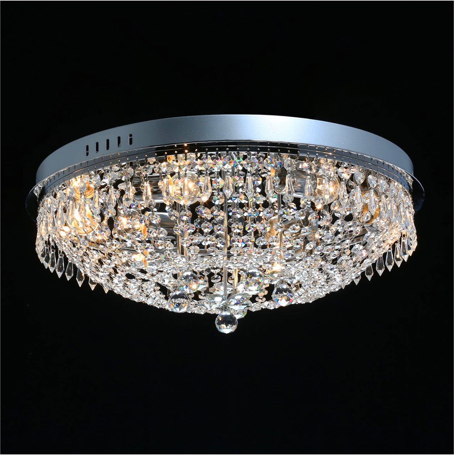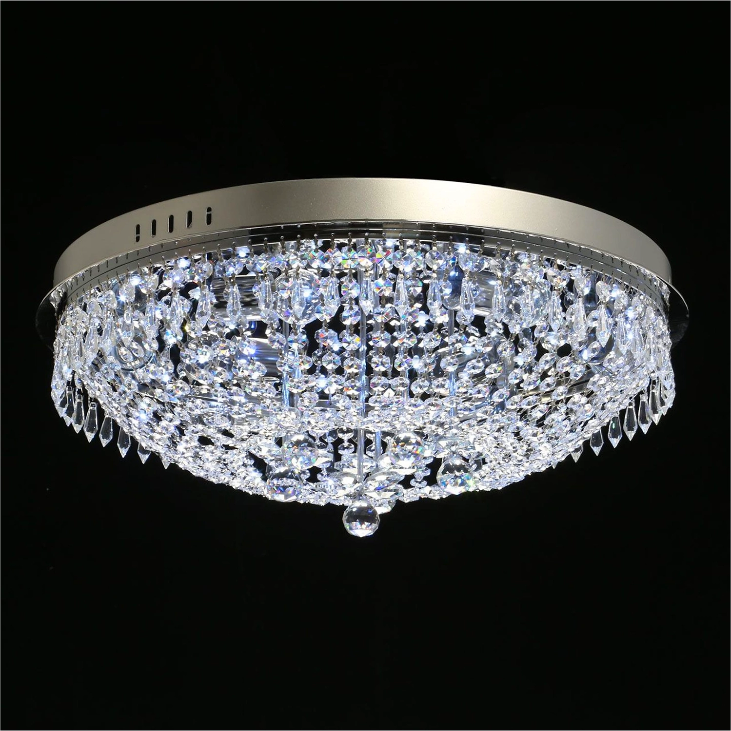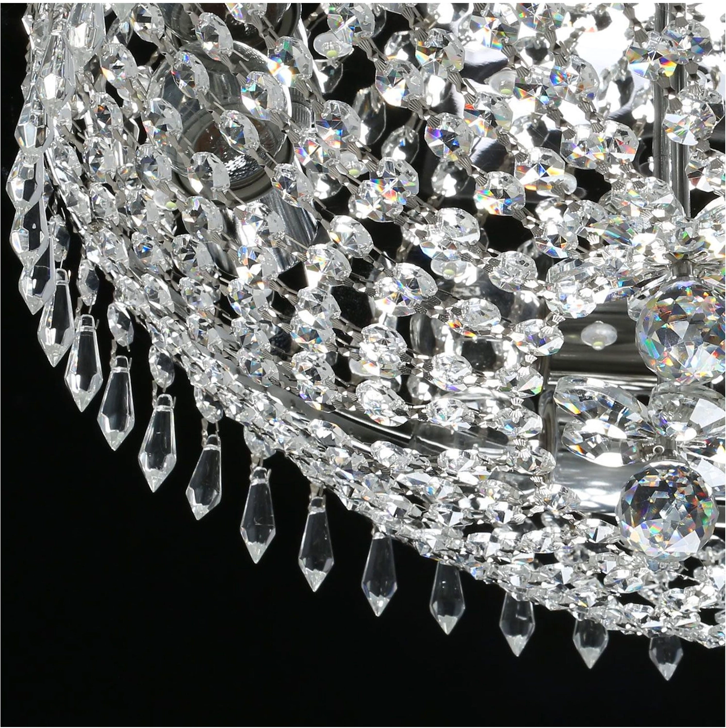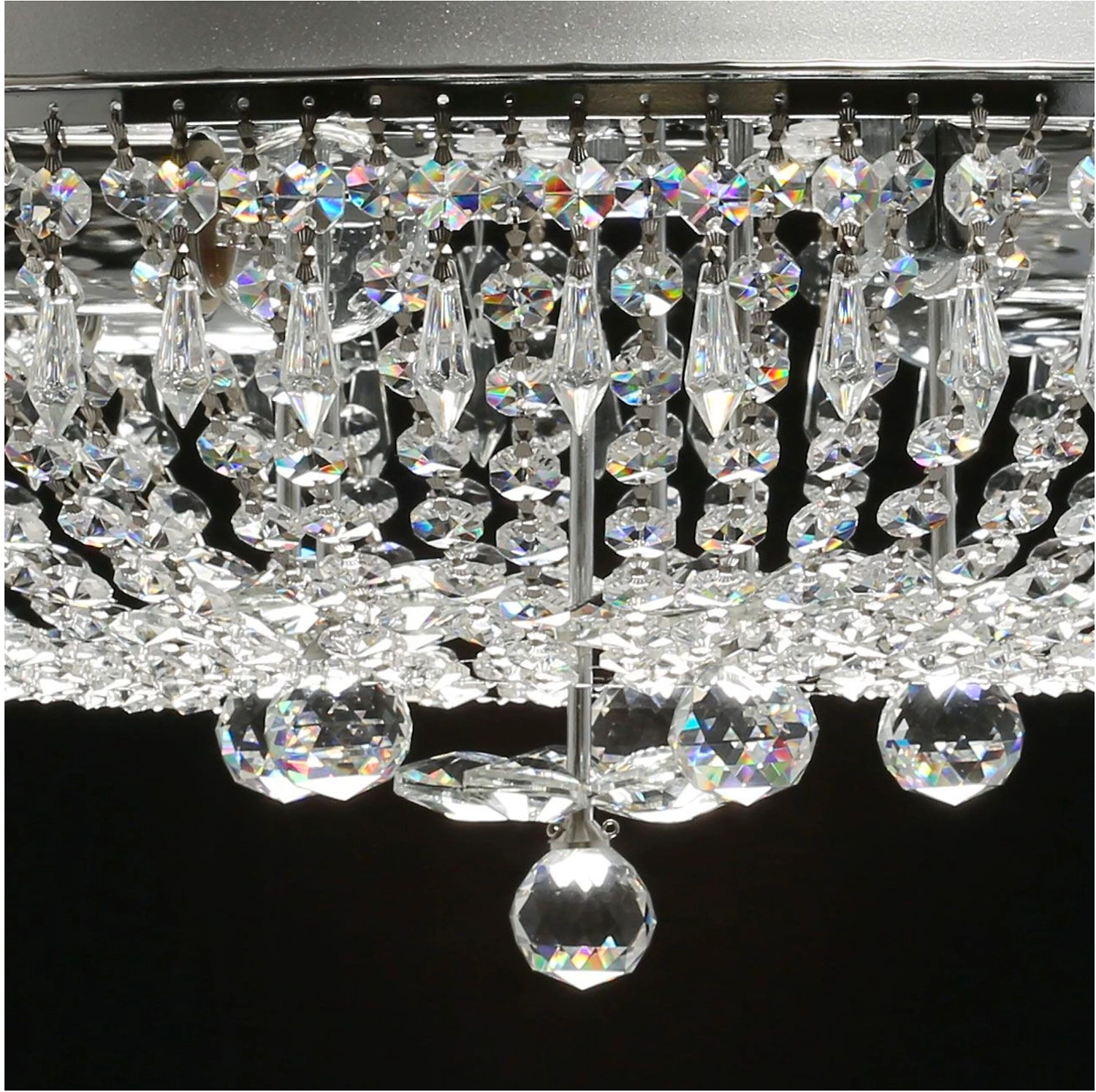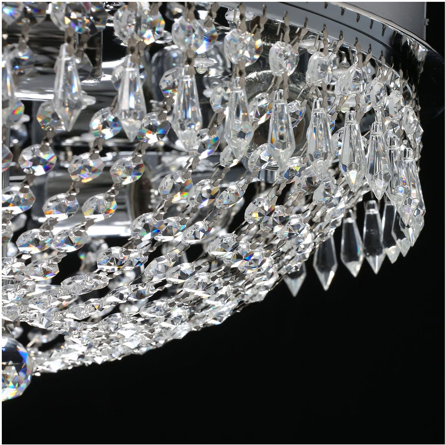 Прозрачный хрусталь разнообразной формы создает красивую игру света. Популярный цвет хрома основания всегда в тренде.