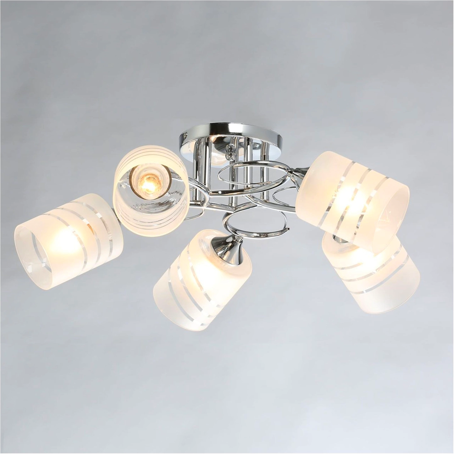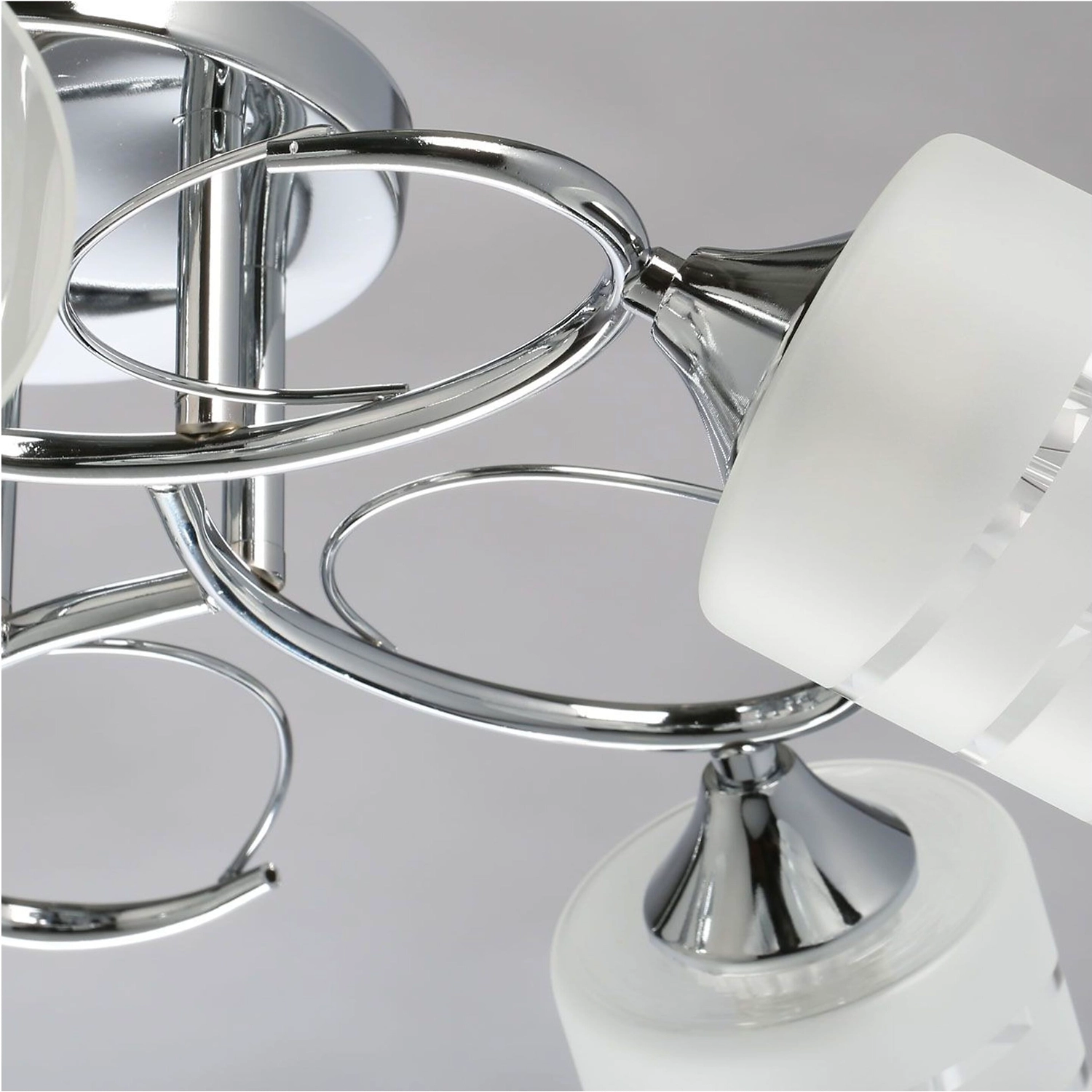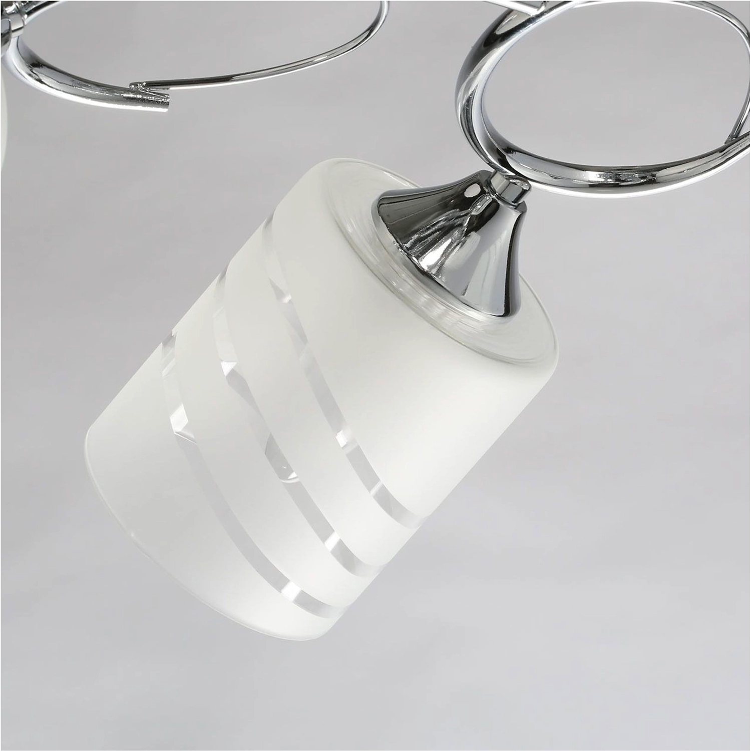 Минималистичный светильник для современных интерьеров. Оригинальный металлический декор цветадобавляет декоративности. Стеклянные плафоны с полосками обеспечивают мягкий световой поток. Компактная высота модели идеальна для стандартных потолков.